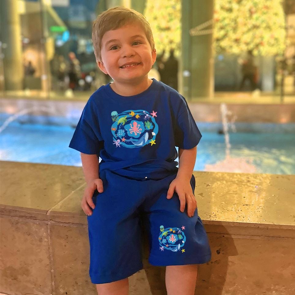 Custom Kids' Short Set Outfit Shorts & Tshirt Ocean Animals