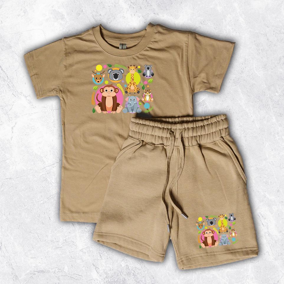 Custom Kids' Short Set Outfit Shorts & Tshirt Safari Baby Animals