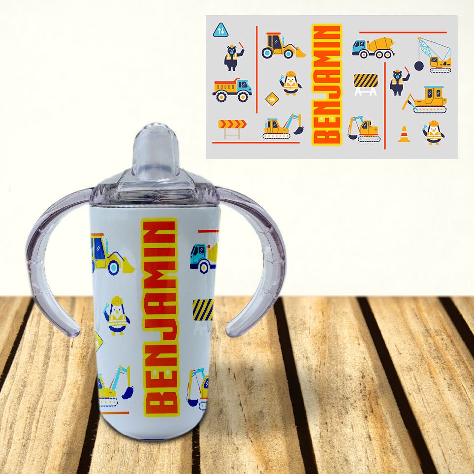 Custom Kids Sippy Cup Personalized Toddler Insulated Tumbler 12oz Bottle Construction Trucks