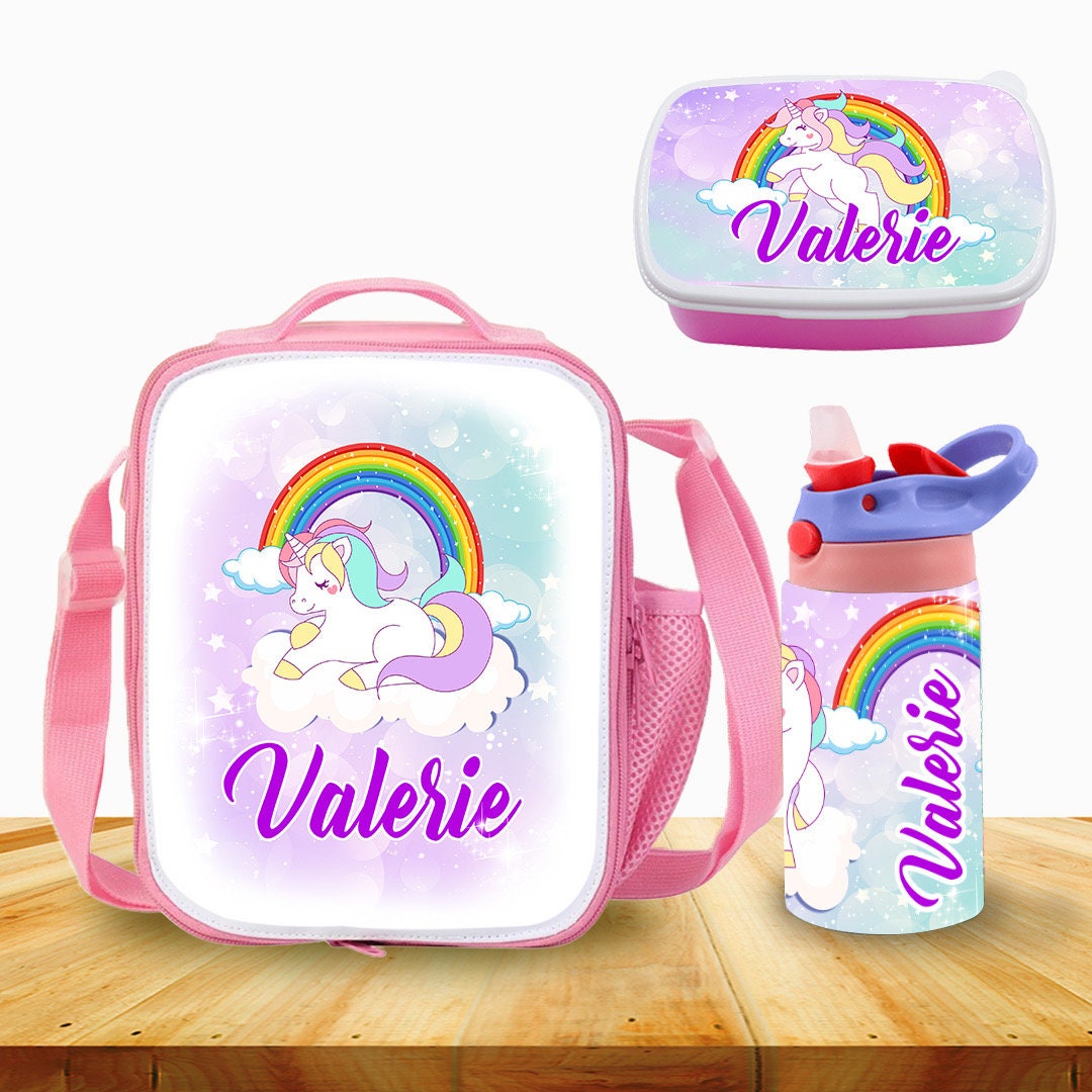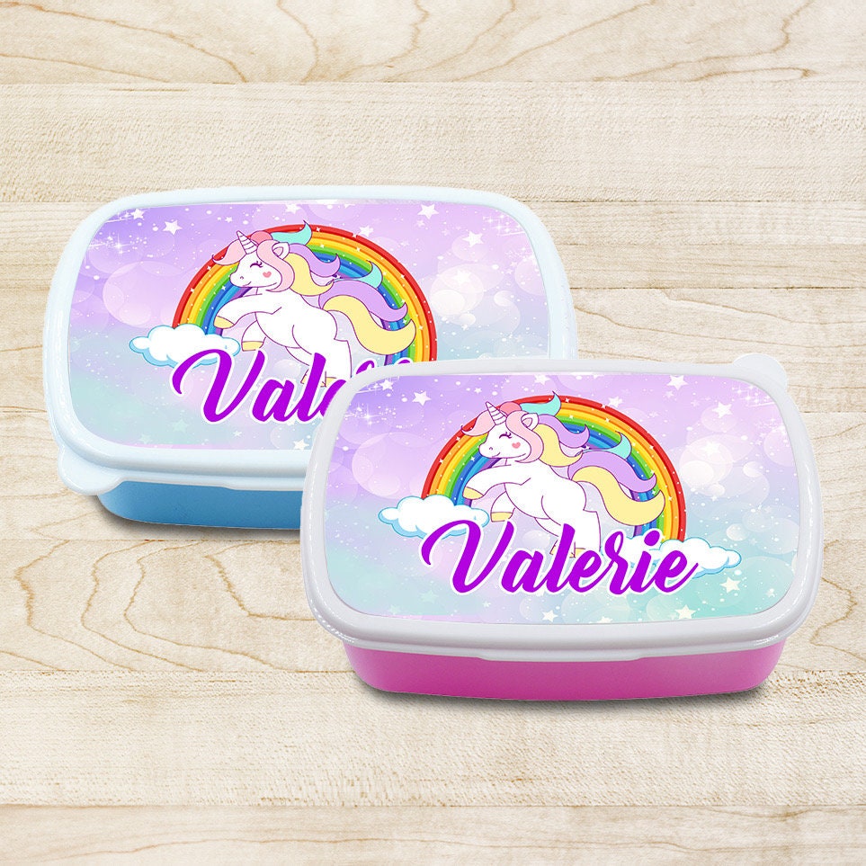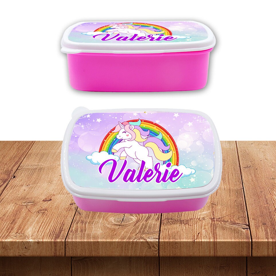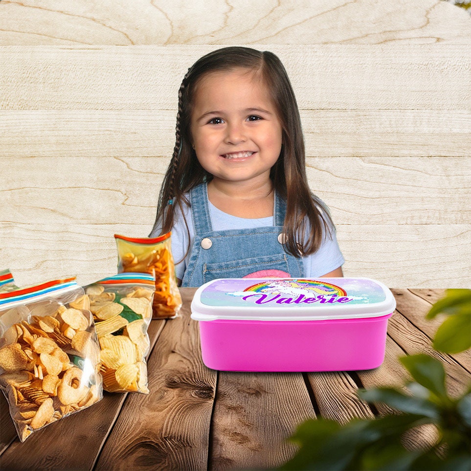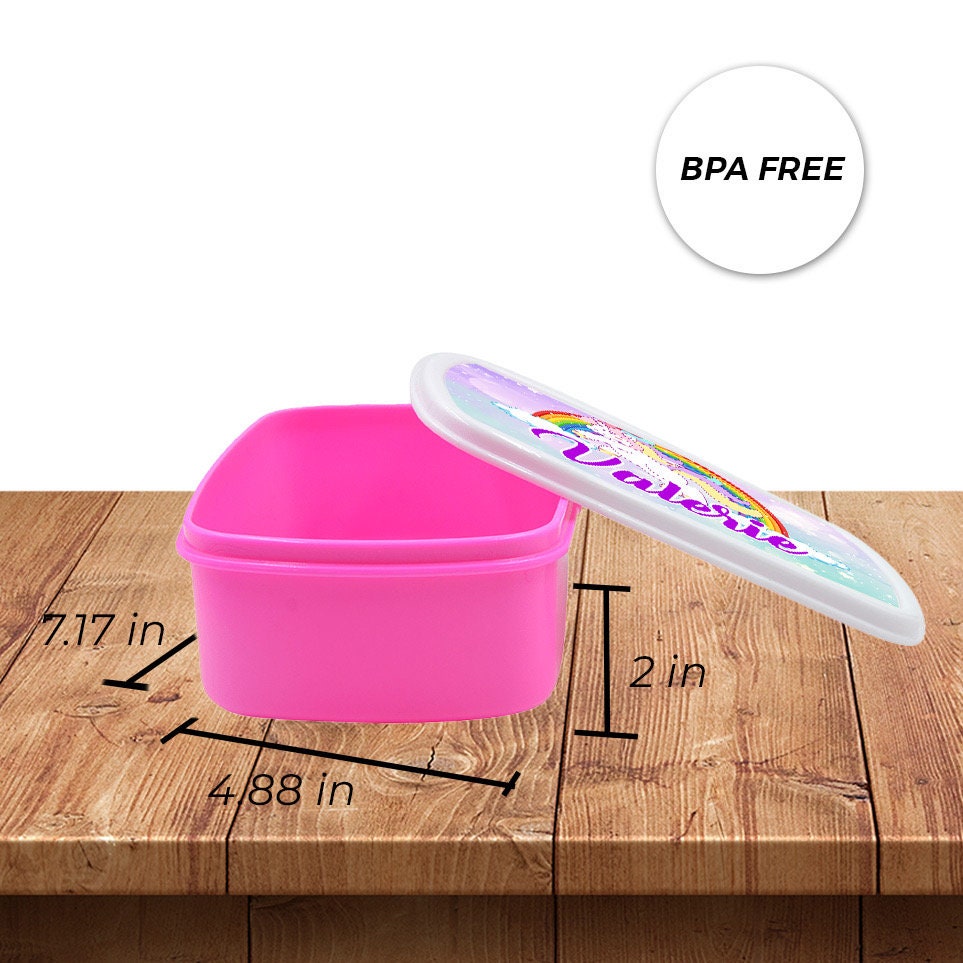 Custom Kids Snack Lunch Box for School Picnic Personalized Travel Container Unicorn Magic Rainbow