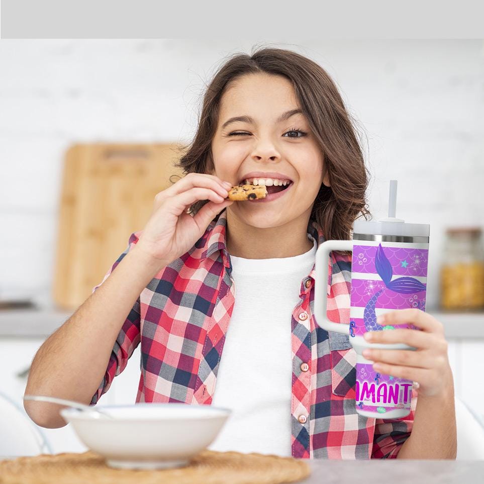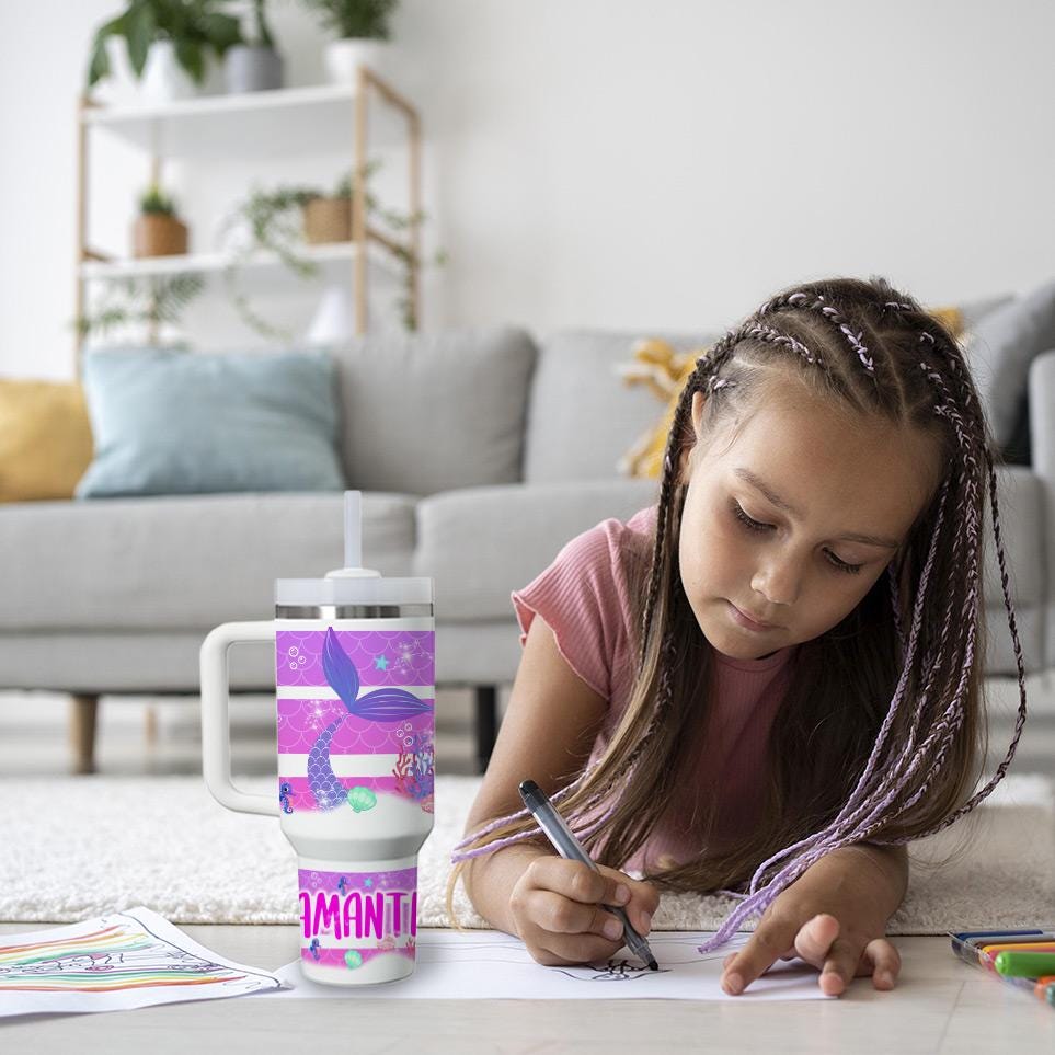 Custom Kids Tumbler 40oz Personalized Name Insulated Bottle Water Mermaid Tail