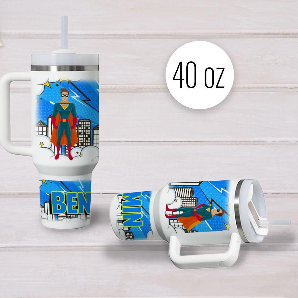 Custom Kids Tumbler 40oz Personalized Name Insulated Bottle Water Superhero 4