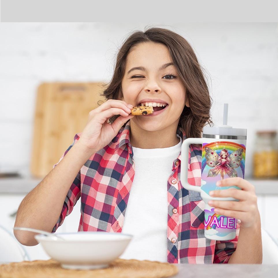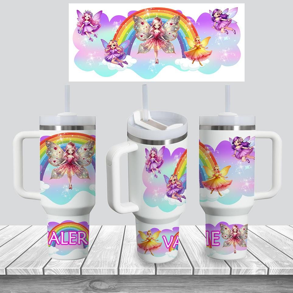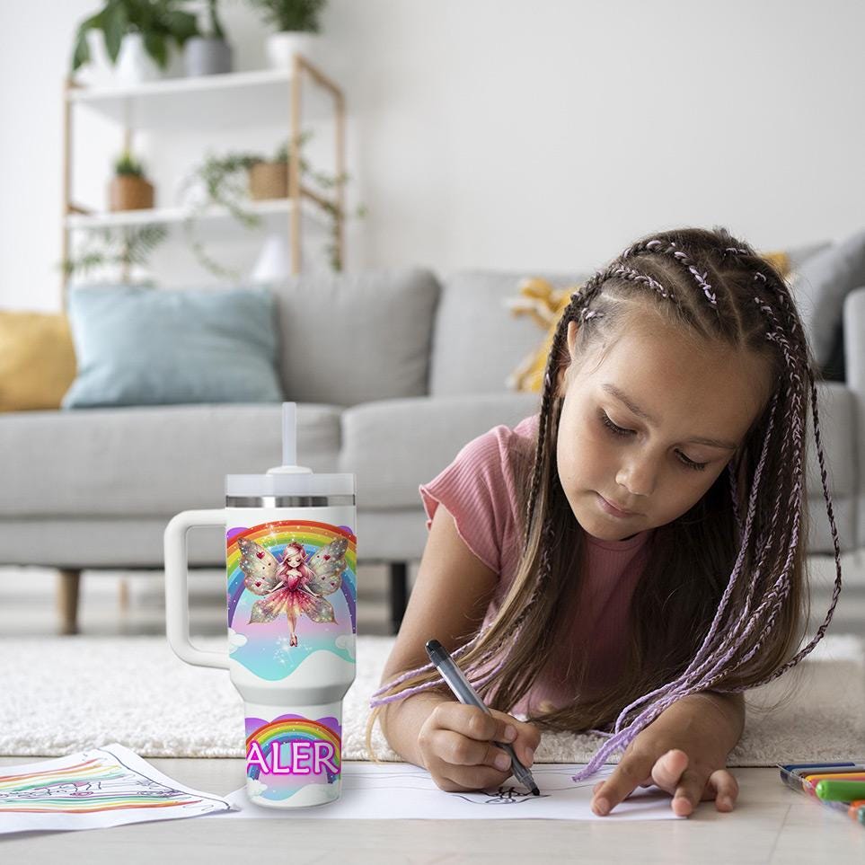 Custom Kids Tumbler 40oz Personalized Name Insulated Bottle Water Fairies