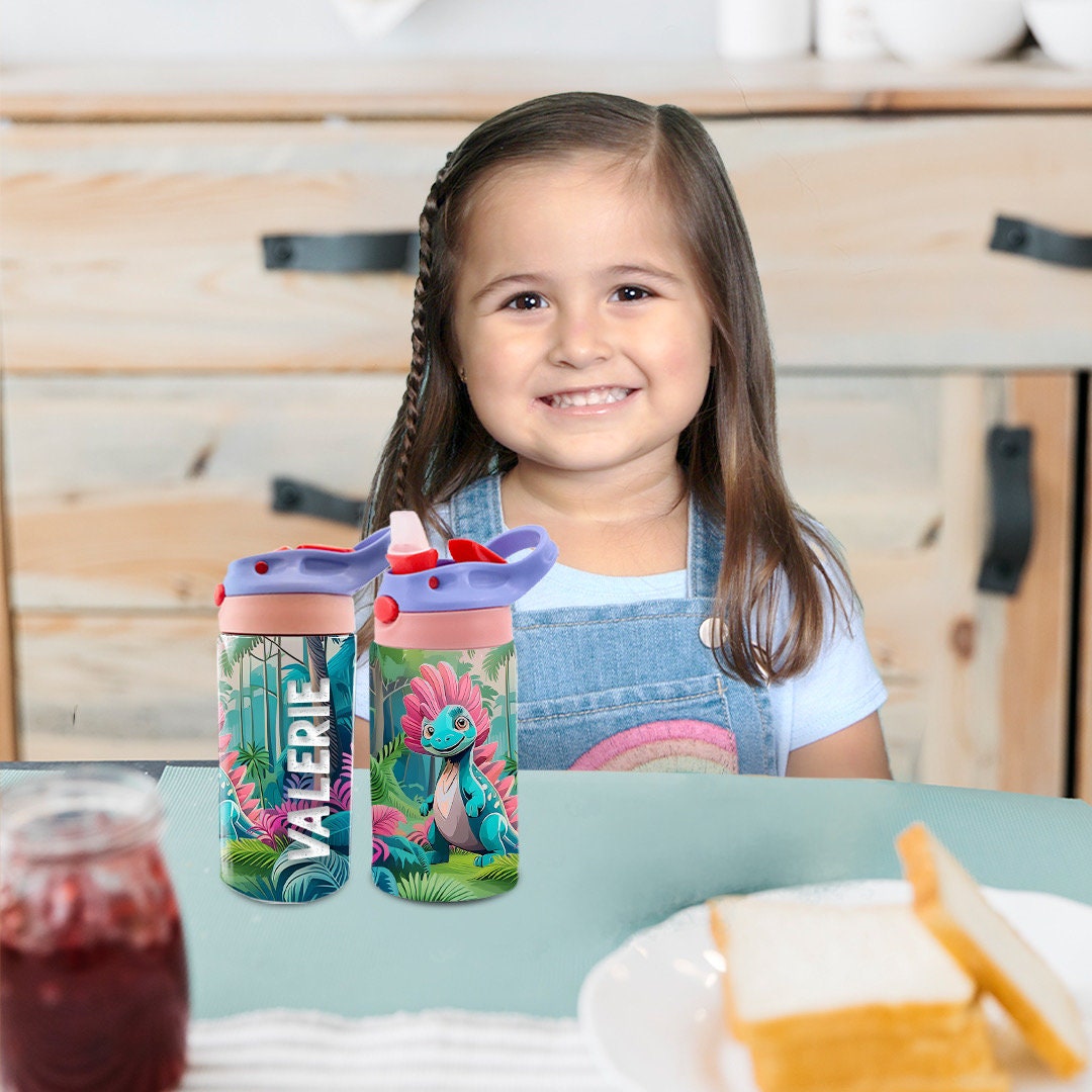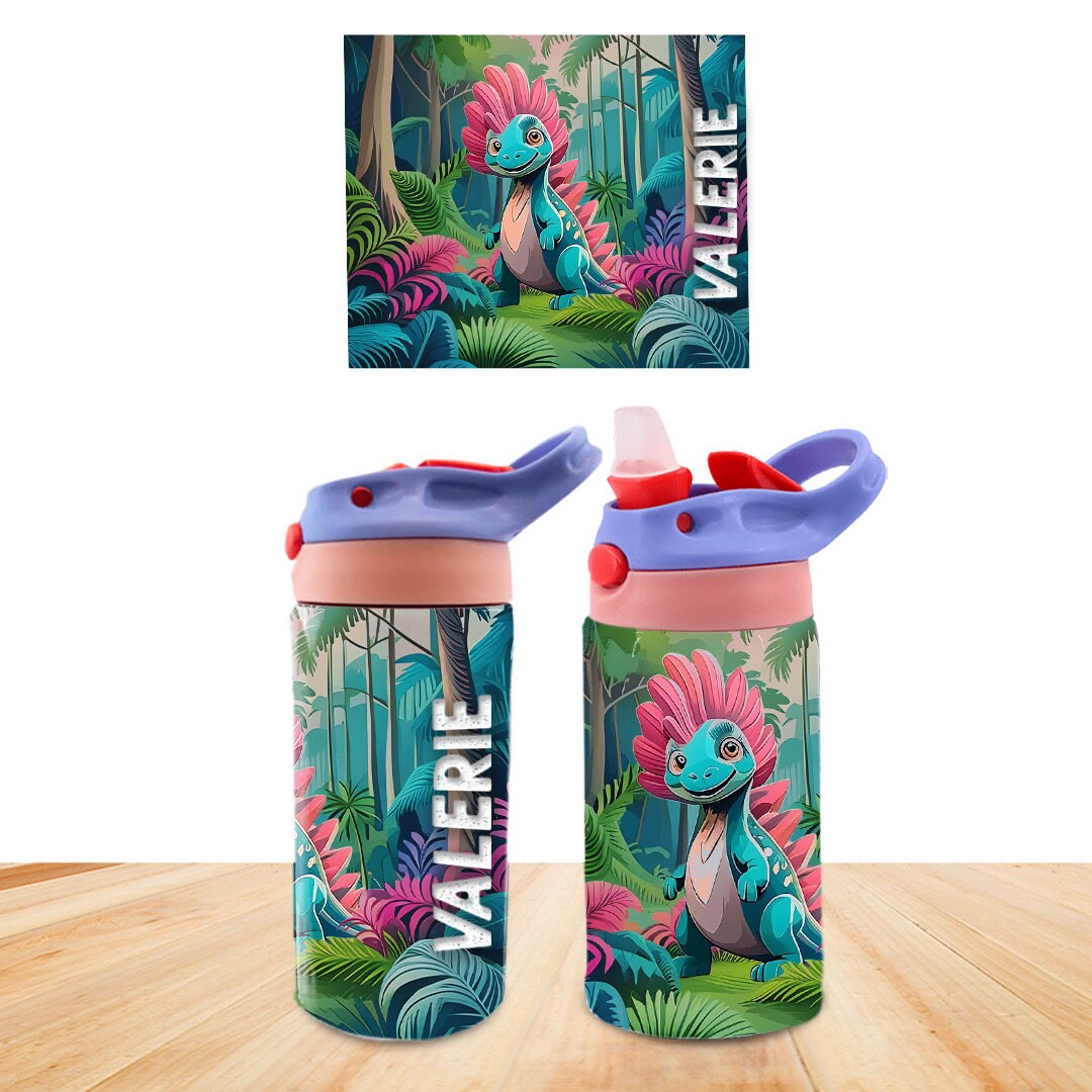 Custom Kids Water Bottle Personalized Toddler Insulated Tumbler 12oz Dinosaurs Jungle