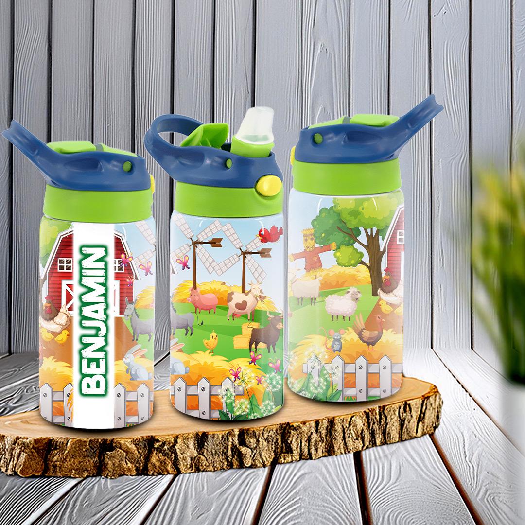 Custom Kids Water Bottle Personalized Toddler Insulated Tumbler 12oz Farm Barn Animals