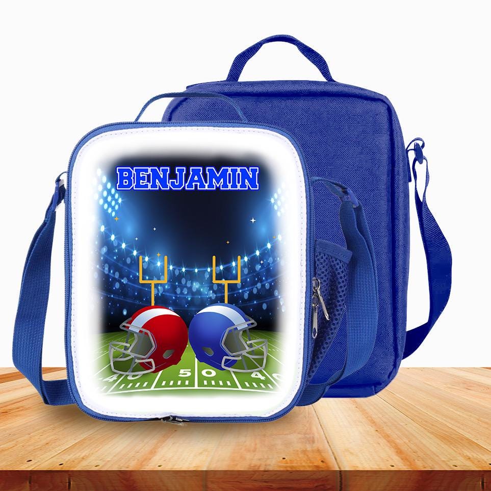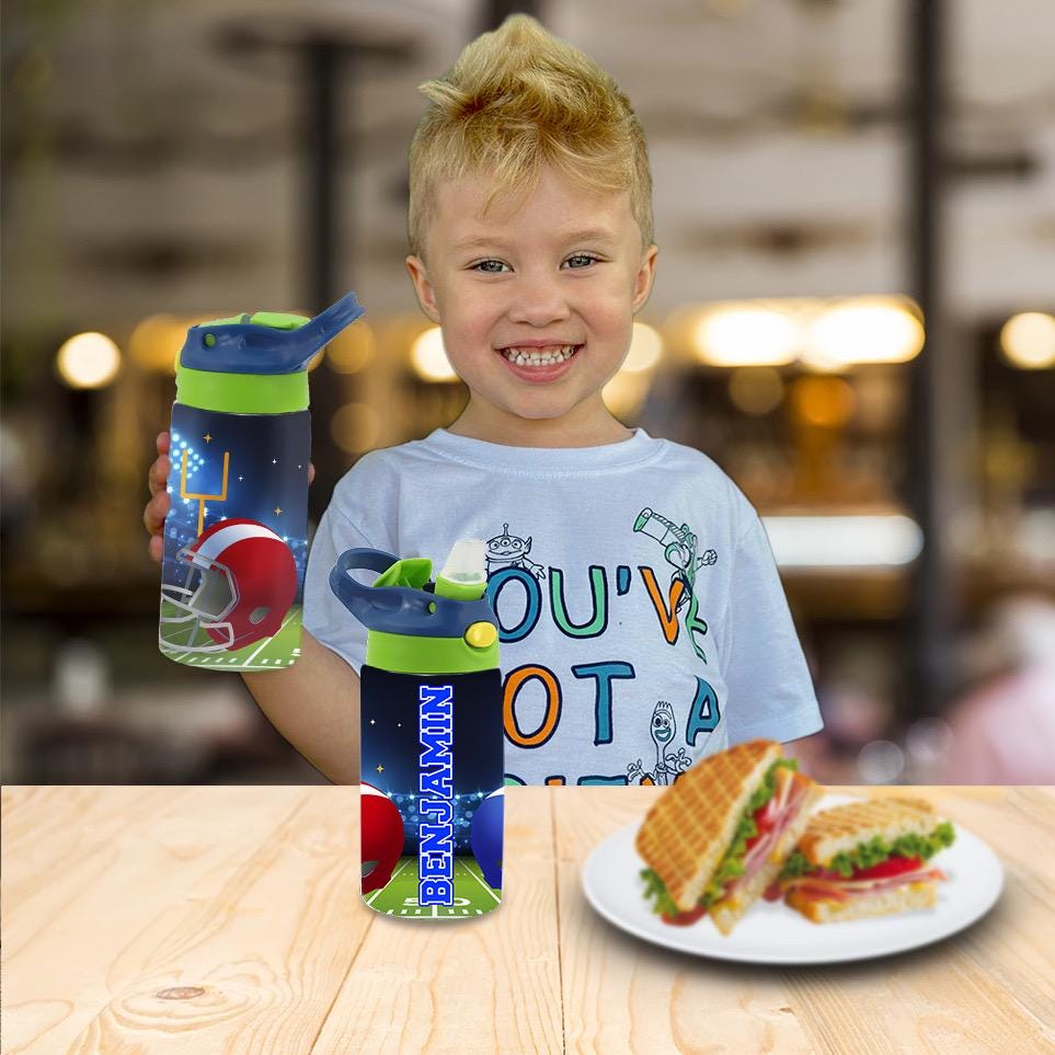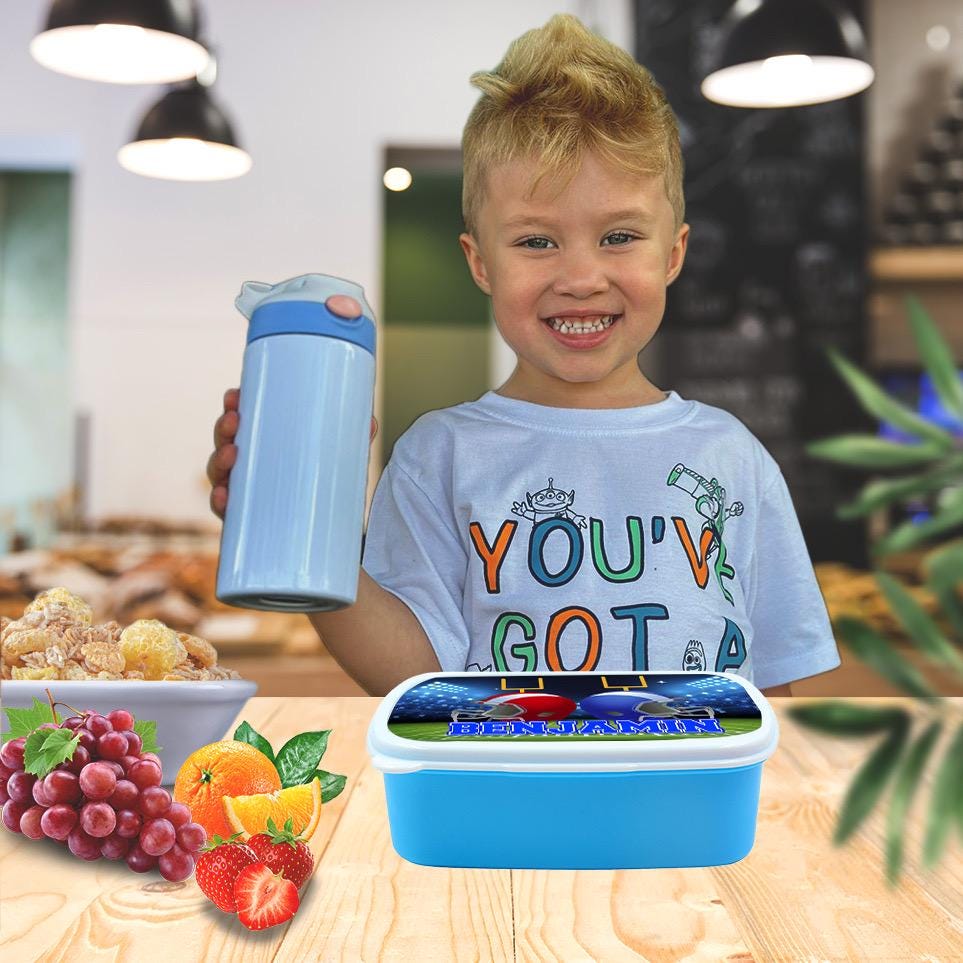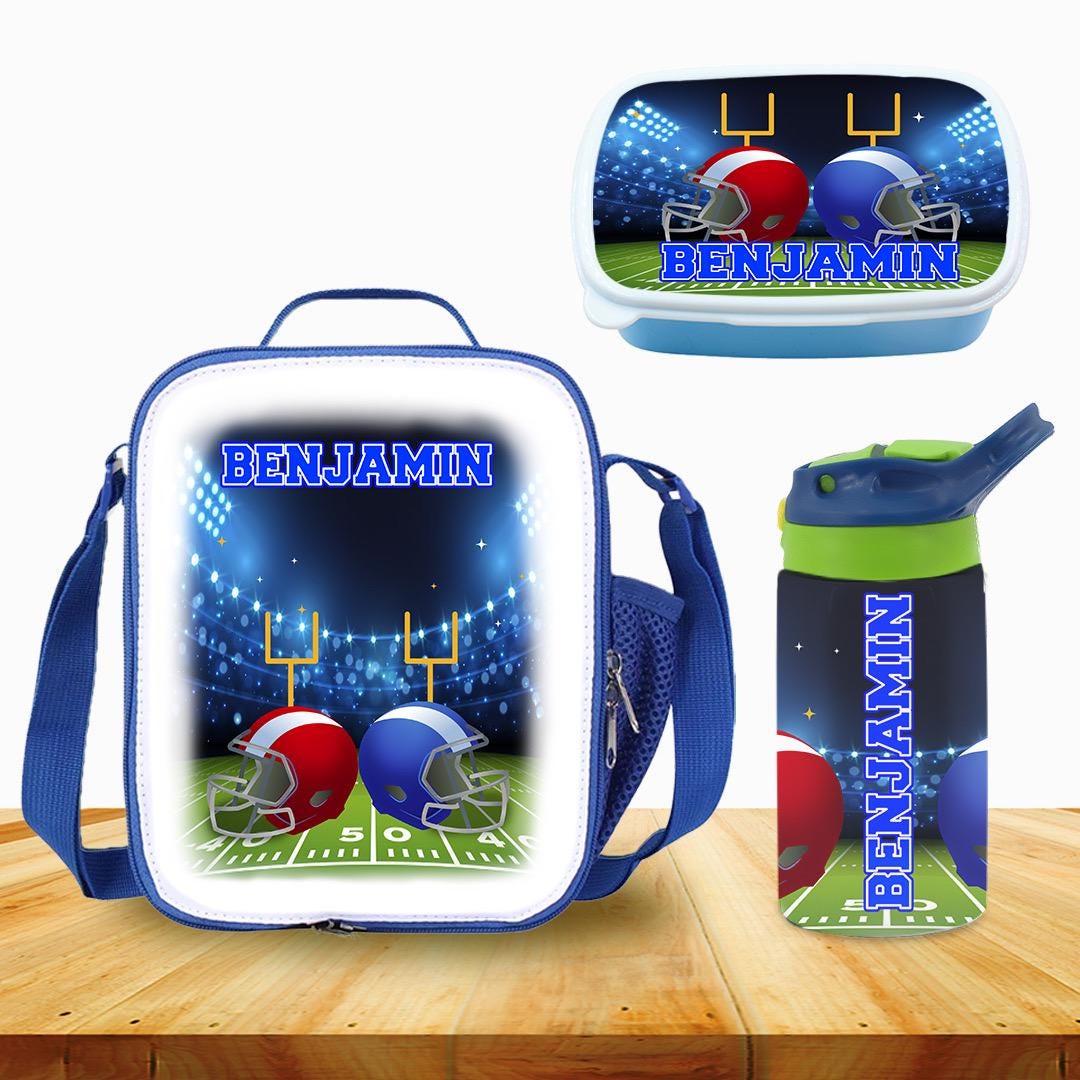 Custom School Kids Bundle Insulated Lunch Bag Snack Box Sippy Cup Bottle Personalized Toddler Set Football Sports Team