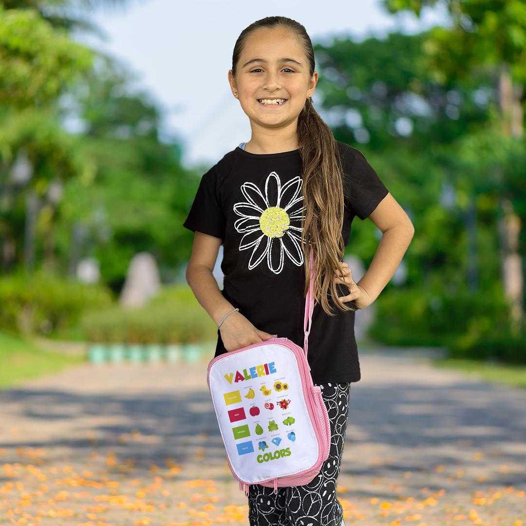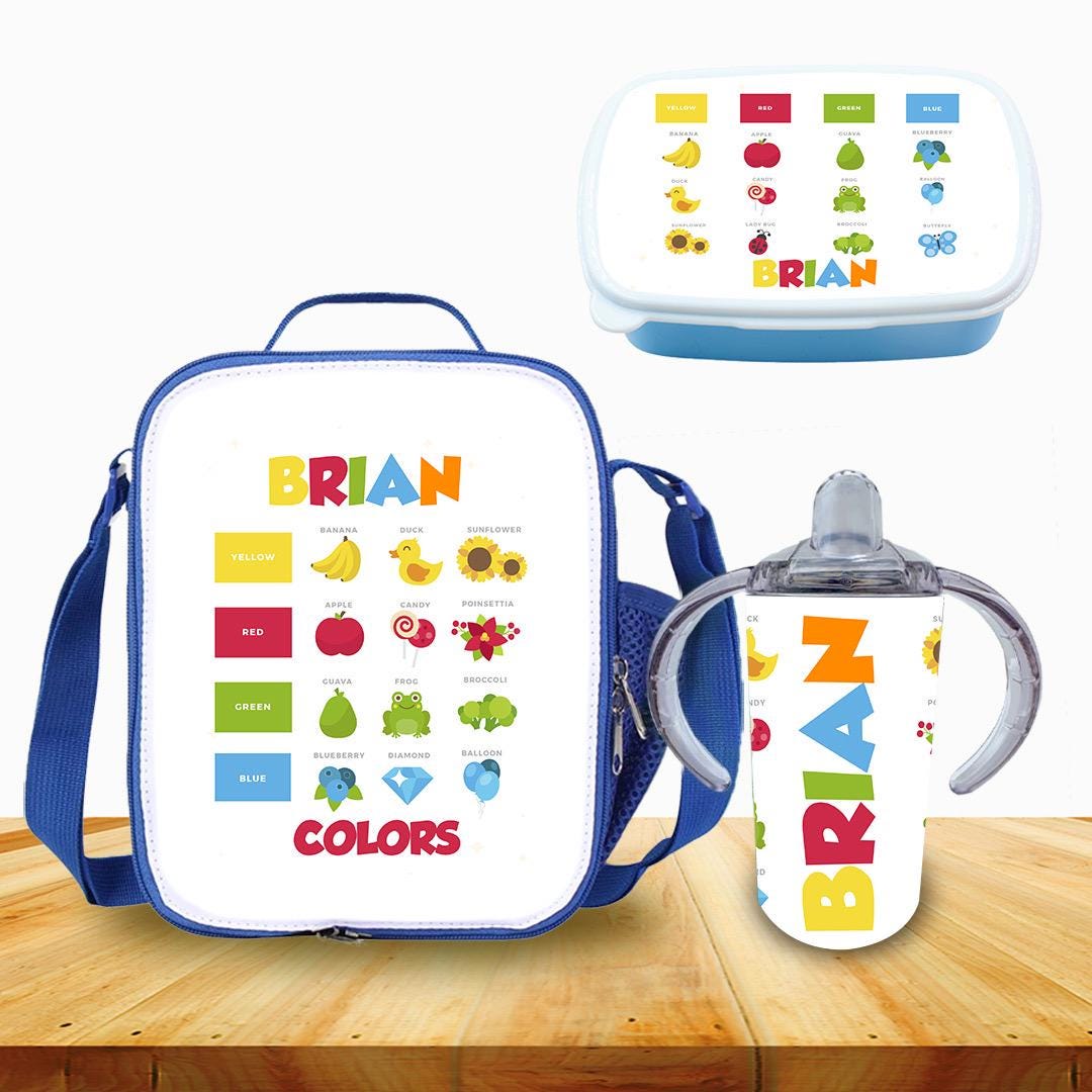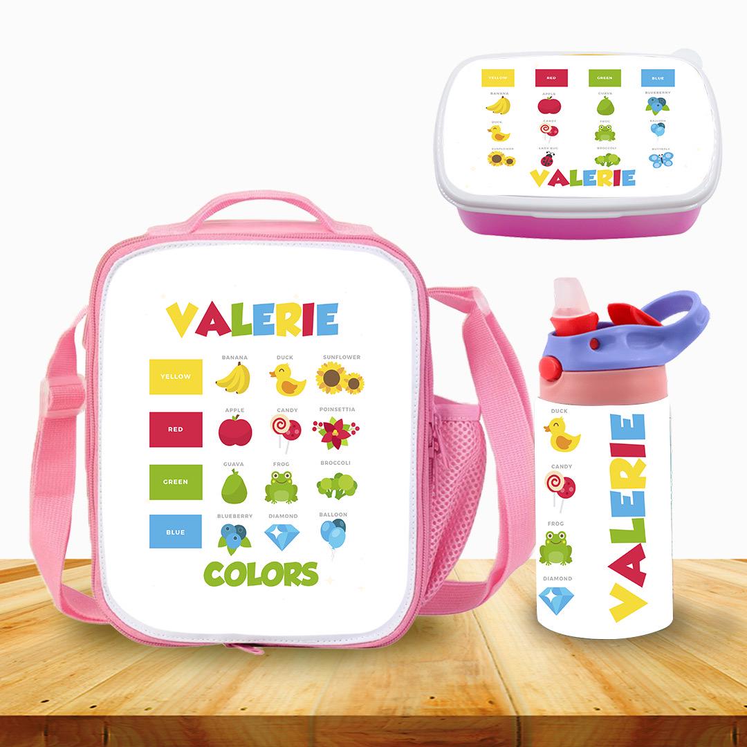 ⢠Complete Set: This bundle includes a personalized lunch bag, snack box, and water bottle, providing everything your child needs for a day at school.