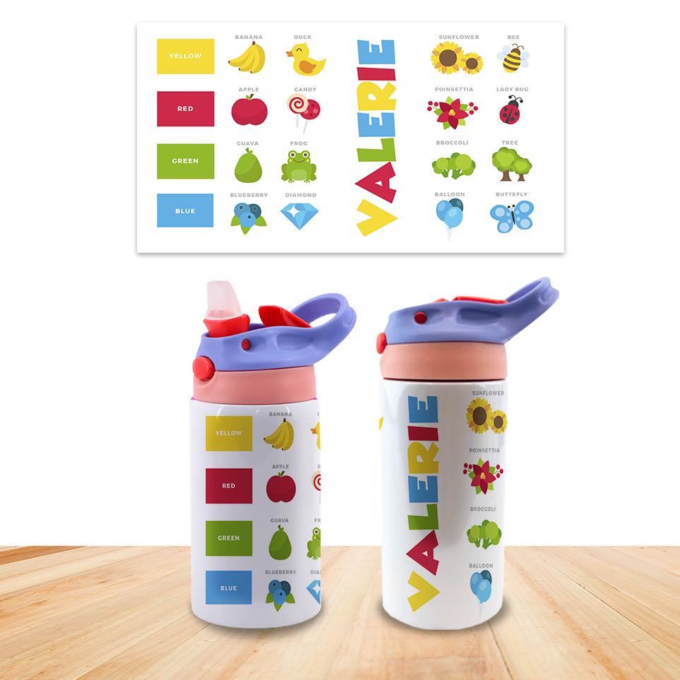 ⢠1x Select Personalized 12oz Water Bottle with Dual Lid or 12oz Stainless Steel Water Bottle with twist on/off lid with built-in handle