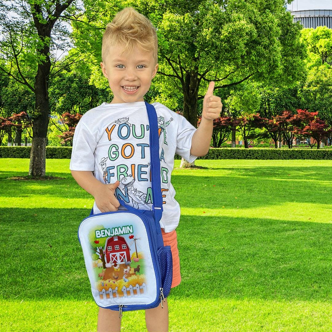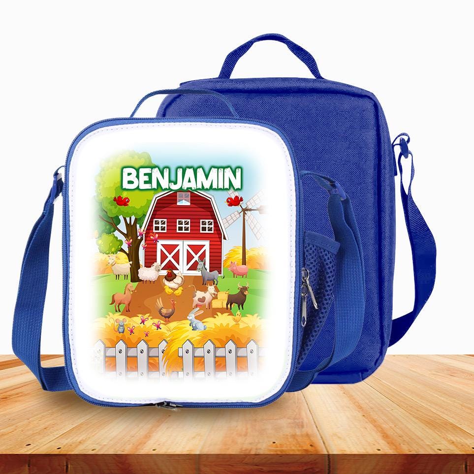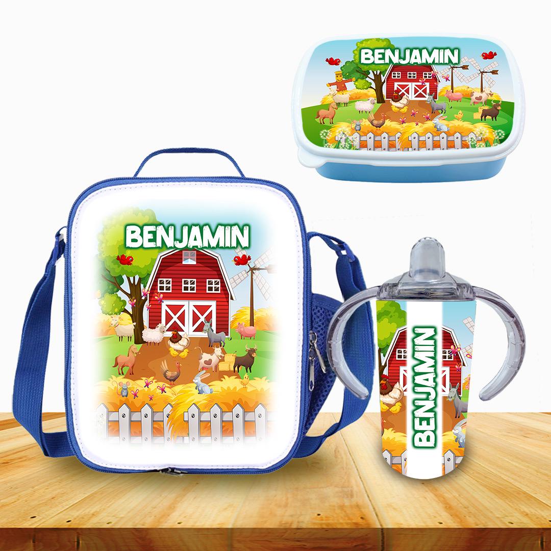 Custom School Kids Bundle Insulated Lunch Bag Snack Box Sippy Cup Bottle Personalized Toddler Set Farm Barn Animals