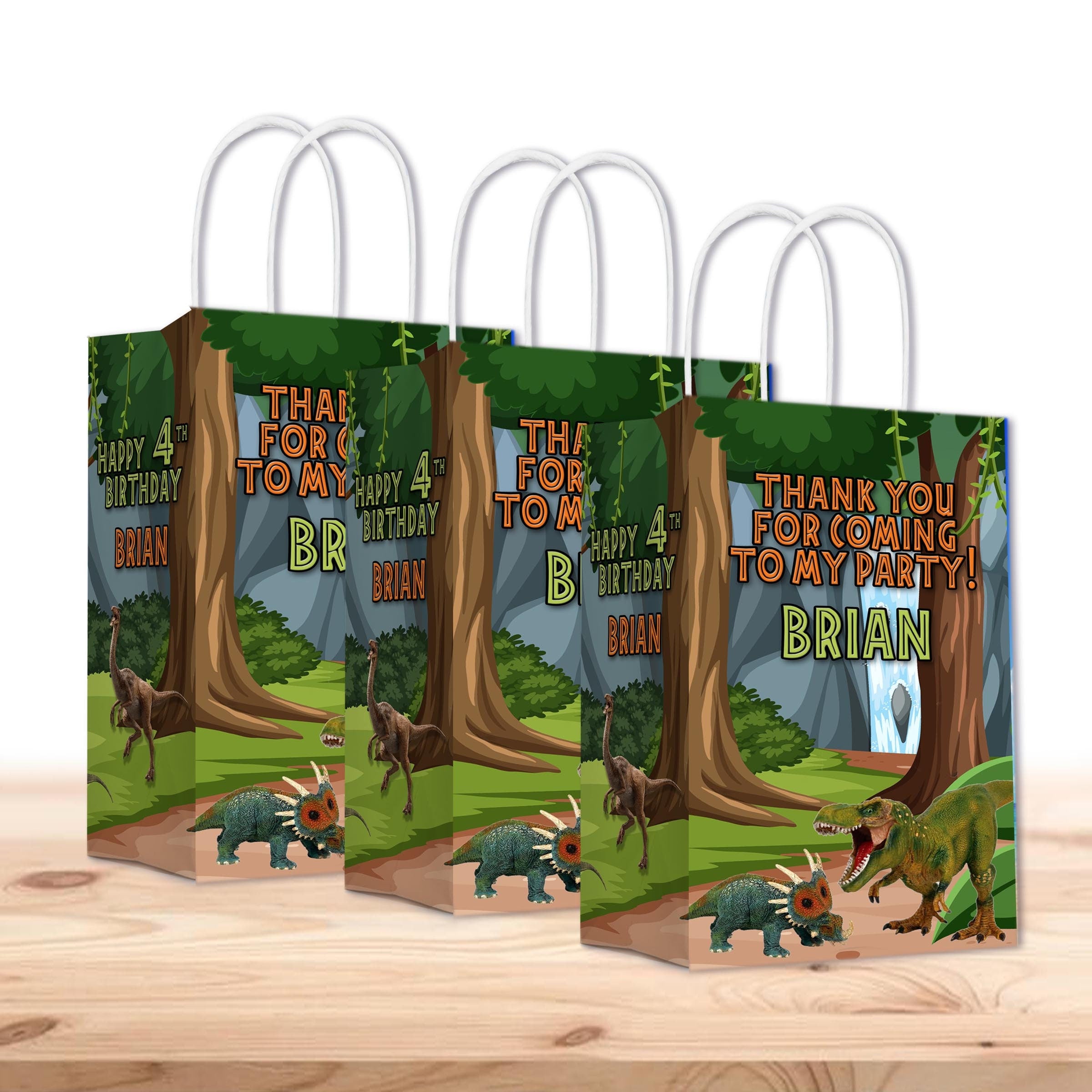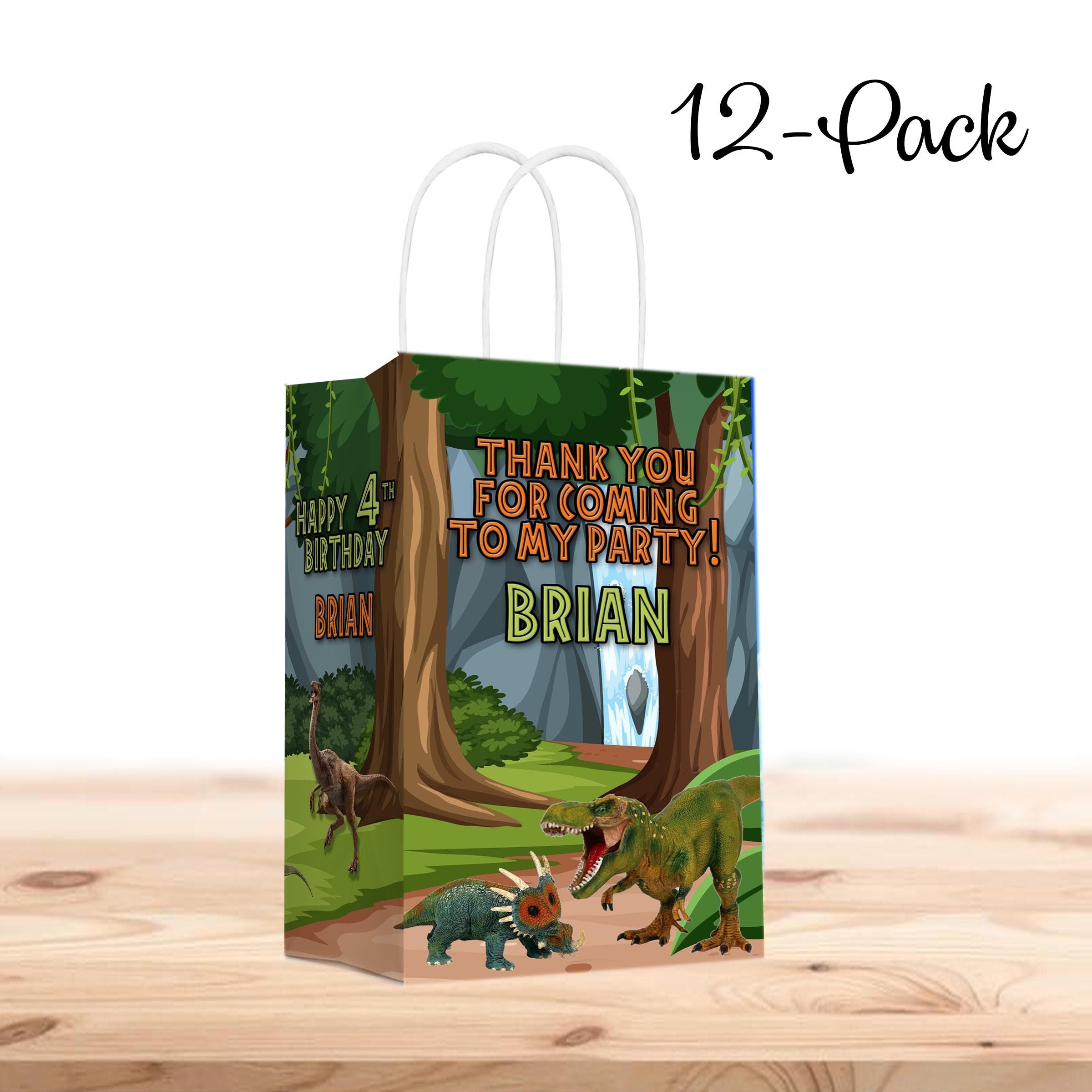 Dinosaurs Bags with Handles for Kids Gift Favor Birthday Party - 12pack