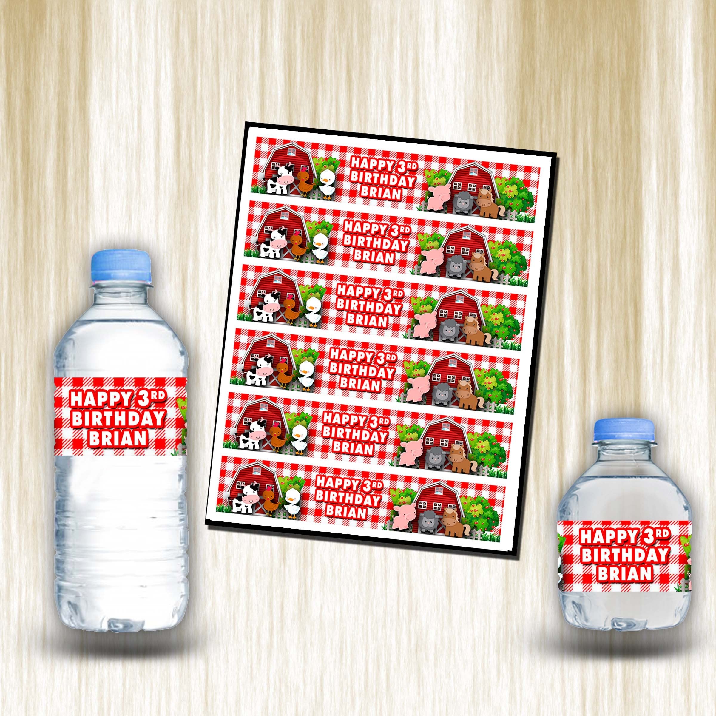 Farm Bottle Water Labels Waterproof Stickers for Kids Birthday Party Favor | 12-Pack Ideal for 16.9oz & 8 fl oz Bottles