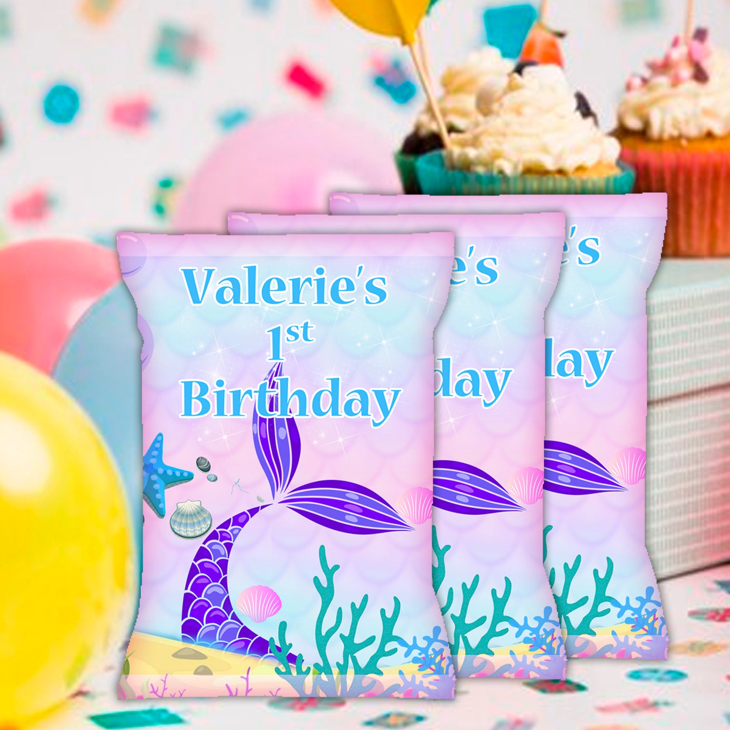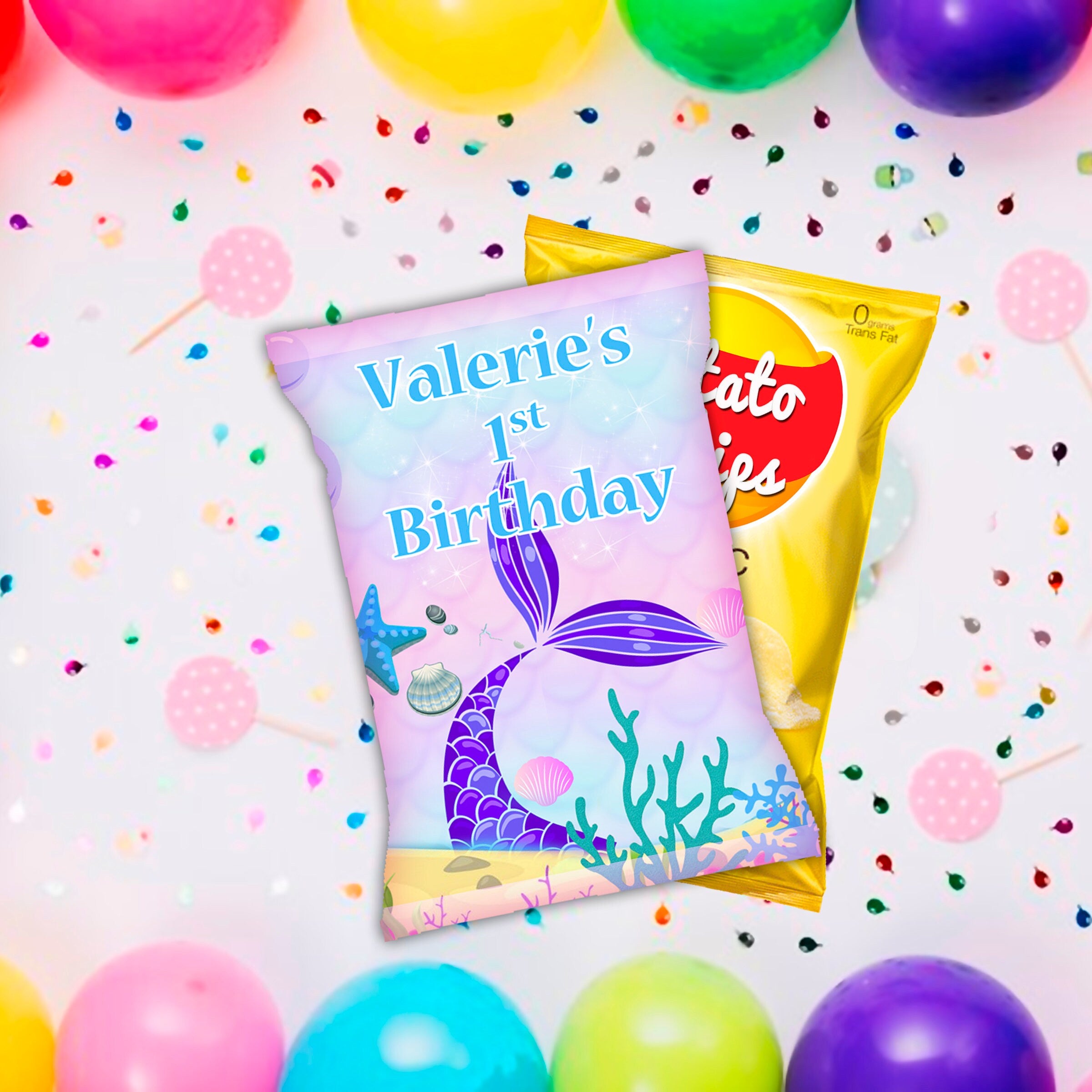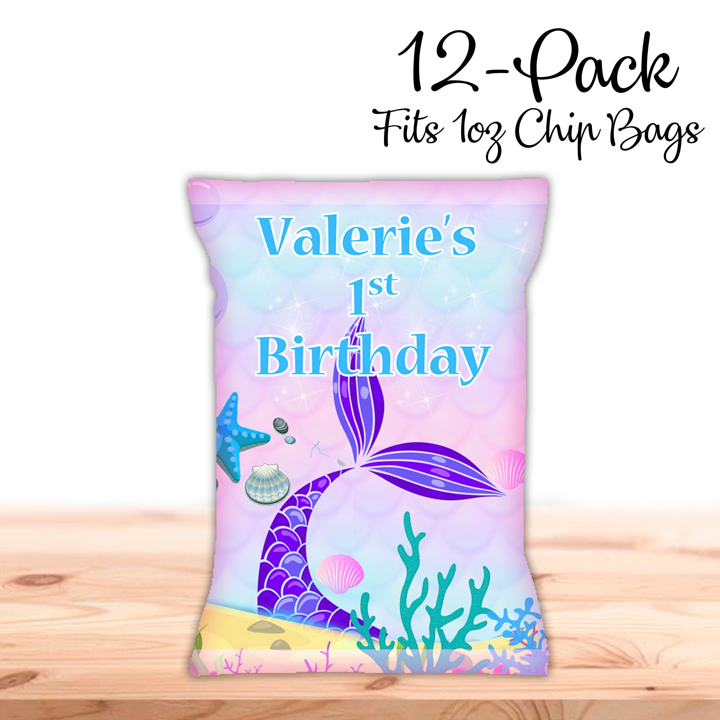 Mermaid Tail Chip Bags Label for Kids Birthday Party Favor Decor, Stickers or Finished Options