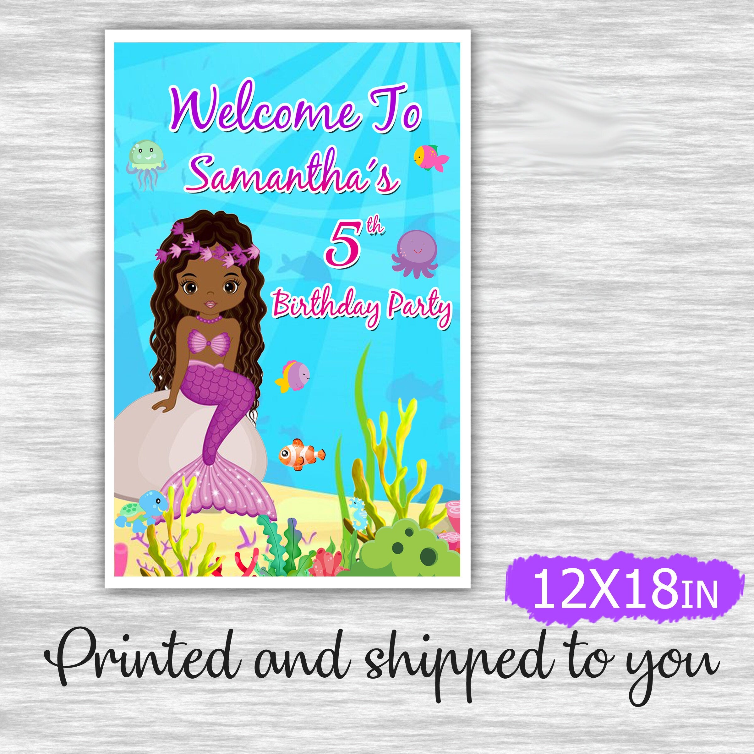 Mermaid Welcome Sign for Birthday Party Wall Door Decor - Hardcover 12x18in
