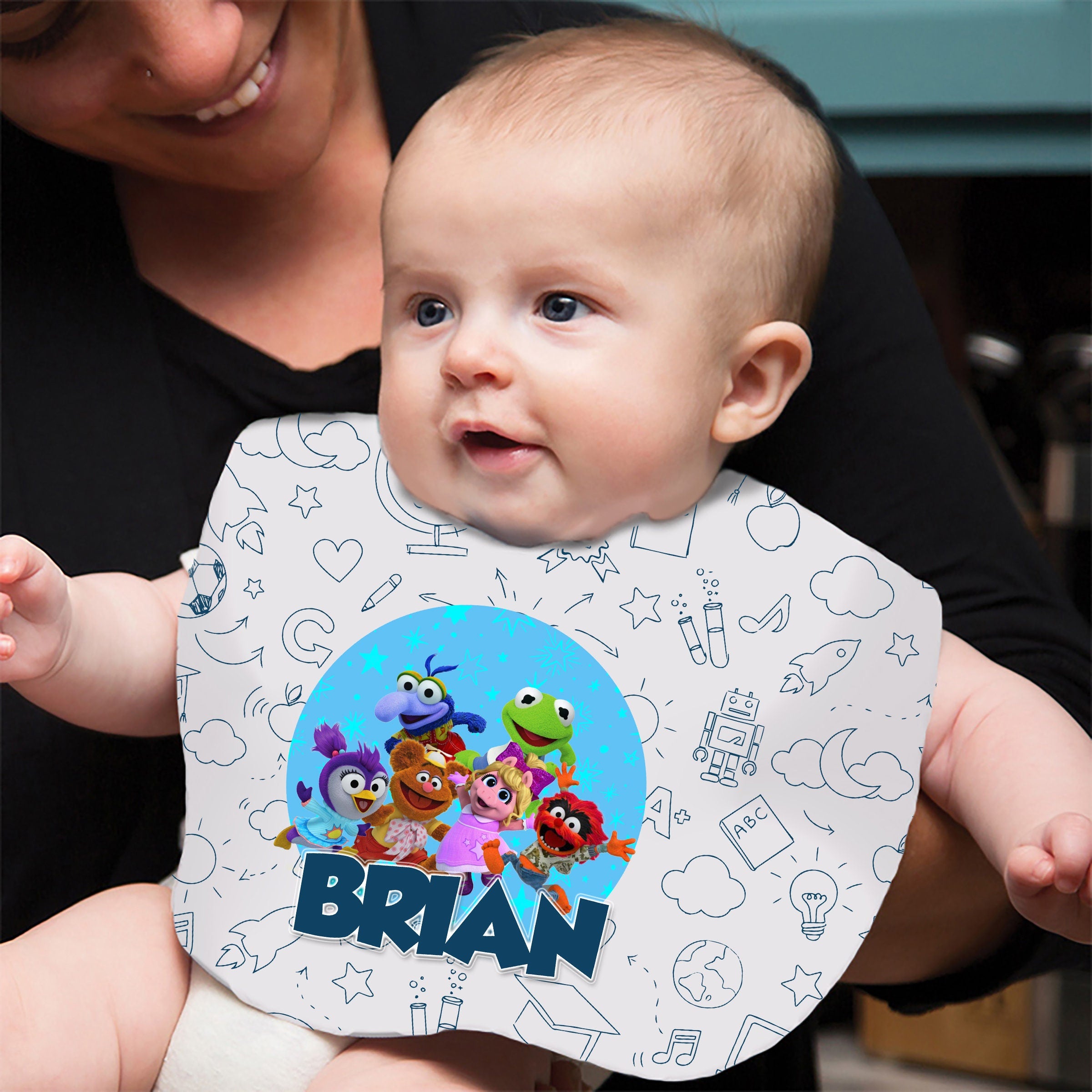 Muppet Babies Baby Bib With Name Custom Gift for Shower Boy Girl Son Daughter