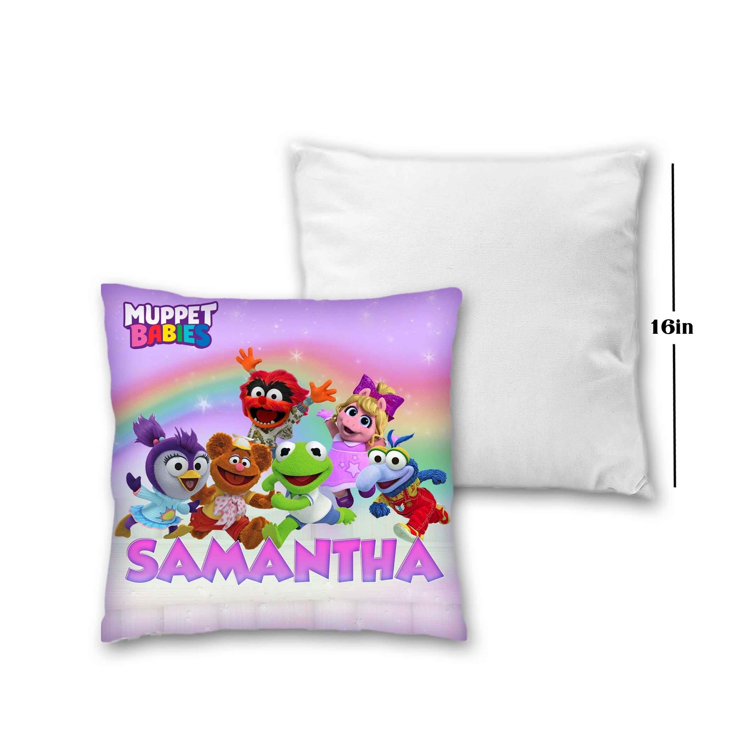 Muppet Babies Pillow with Name Kids Cushion Room Decor Gift for Son Daughter Grandson Granddaughter- 16in insert included
