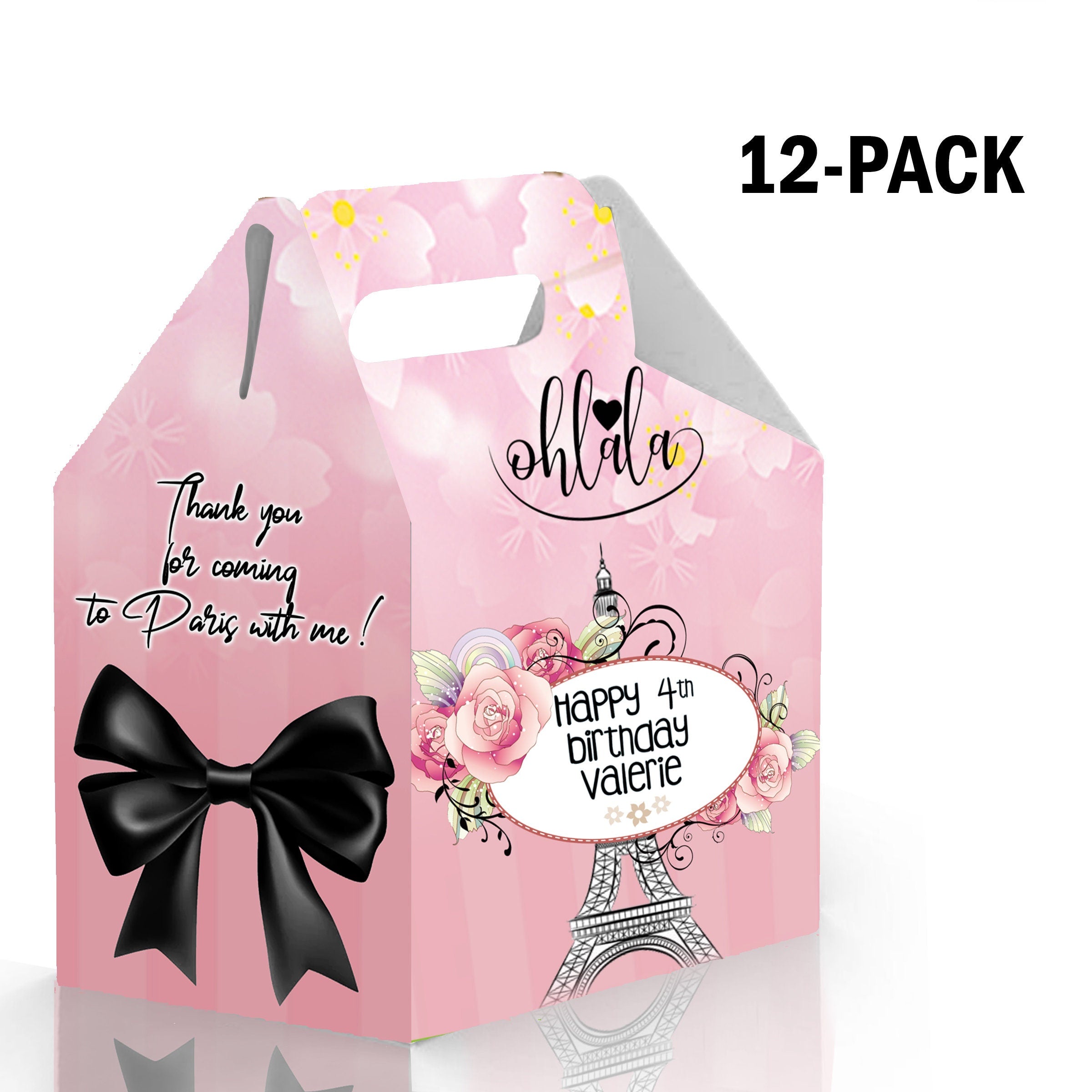 Paris Candy Gable Box for Birthday Party Favors 12 Pack - 4.4x4.5in