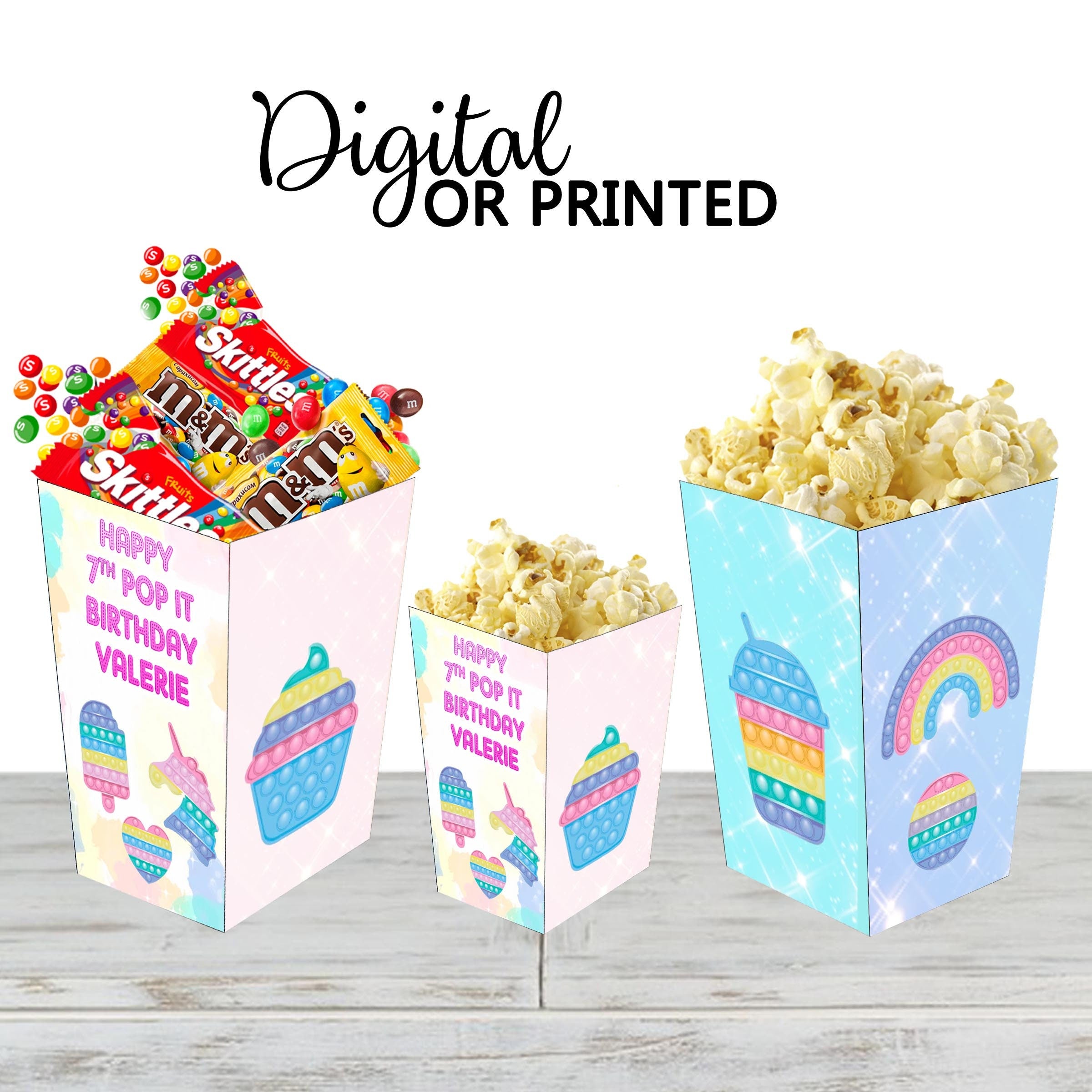 Pop It Popcorn Box for Birthday Party Candy Snack Favor Rainbow - Digital and physical Options