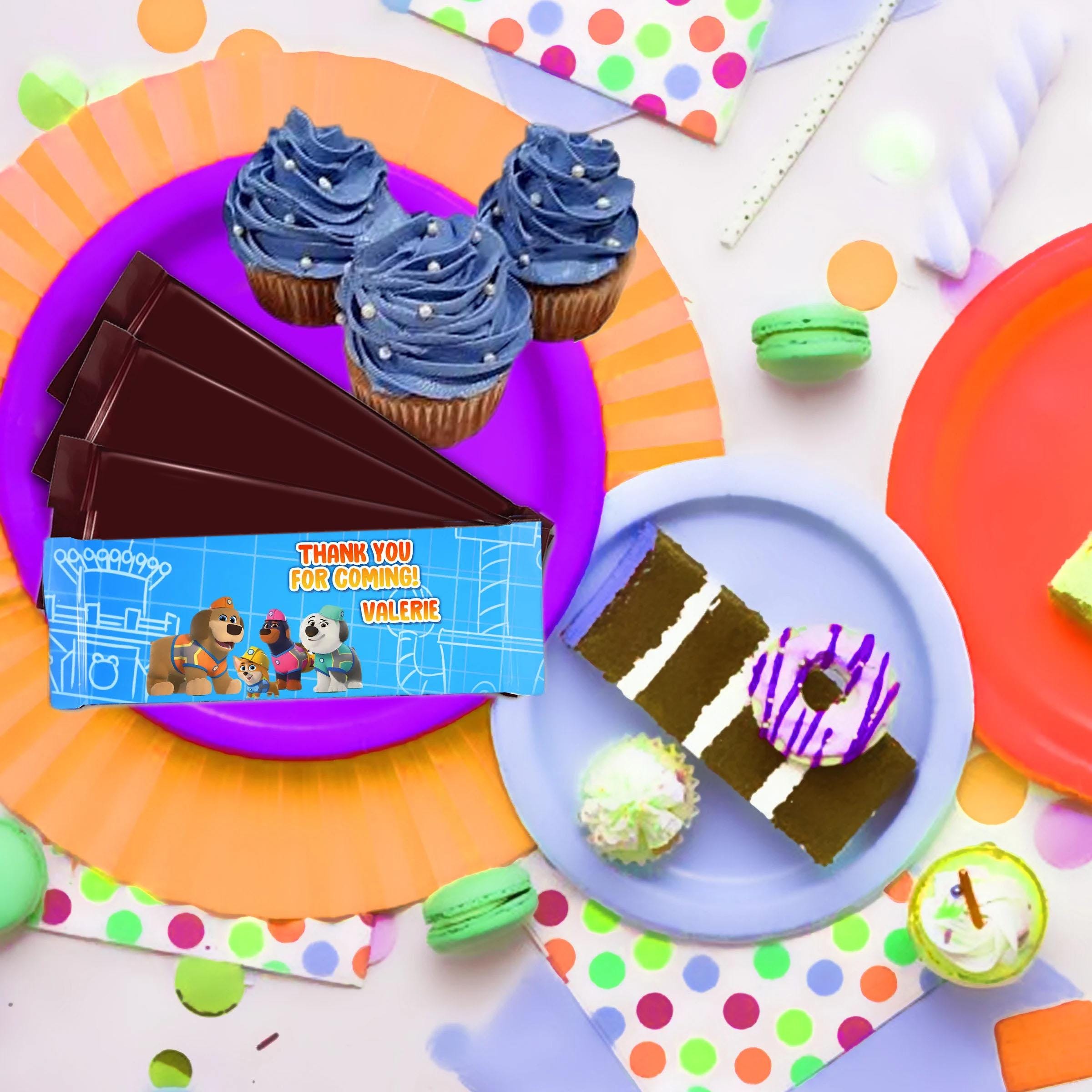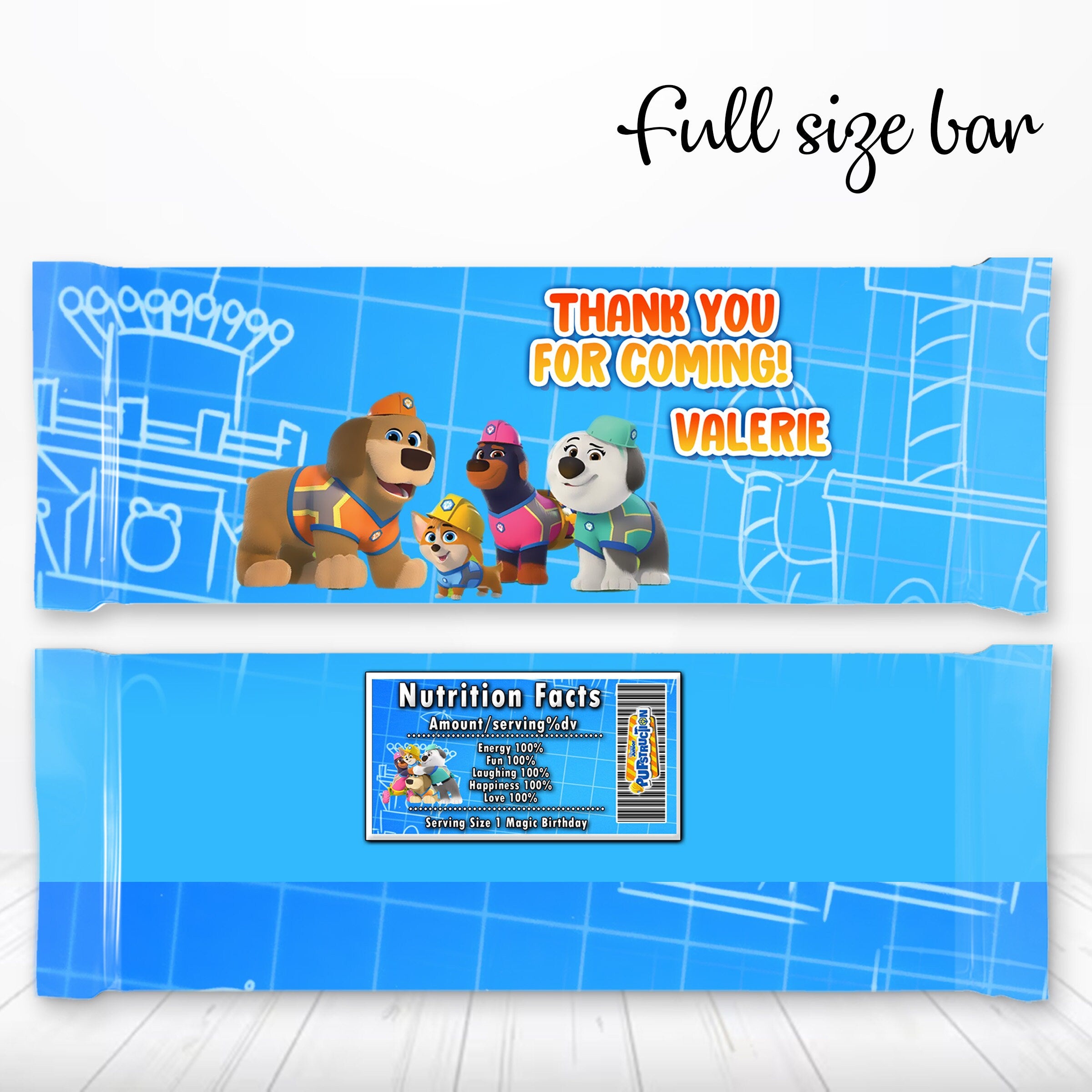 Pupstruction Candy Bar Labels for Party Decor Chocolate Birthday Favor | 12-Pack Stickers Fits Chocolate Bar 1.55oz