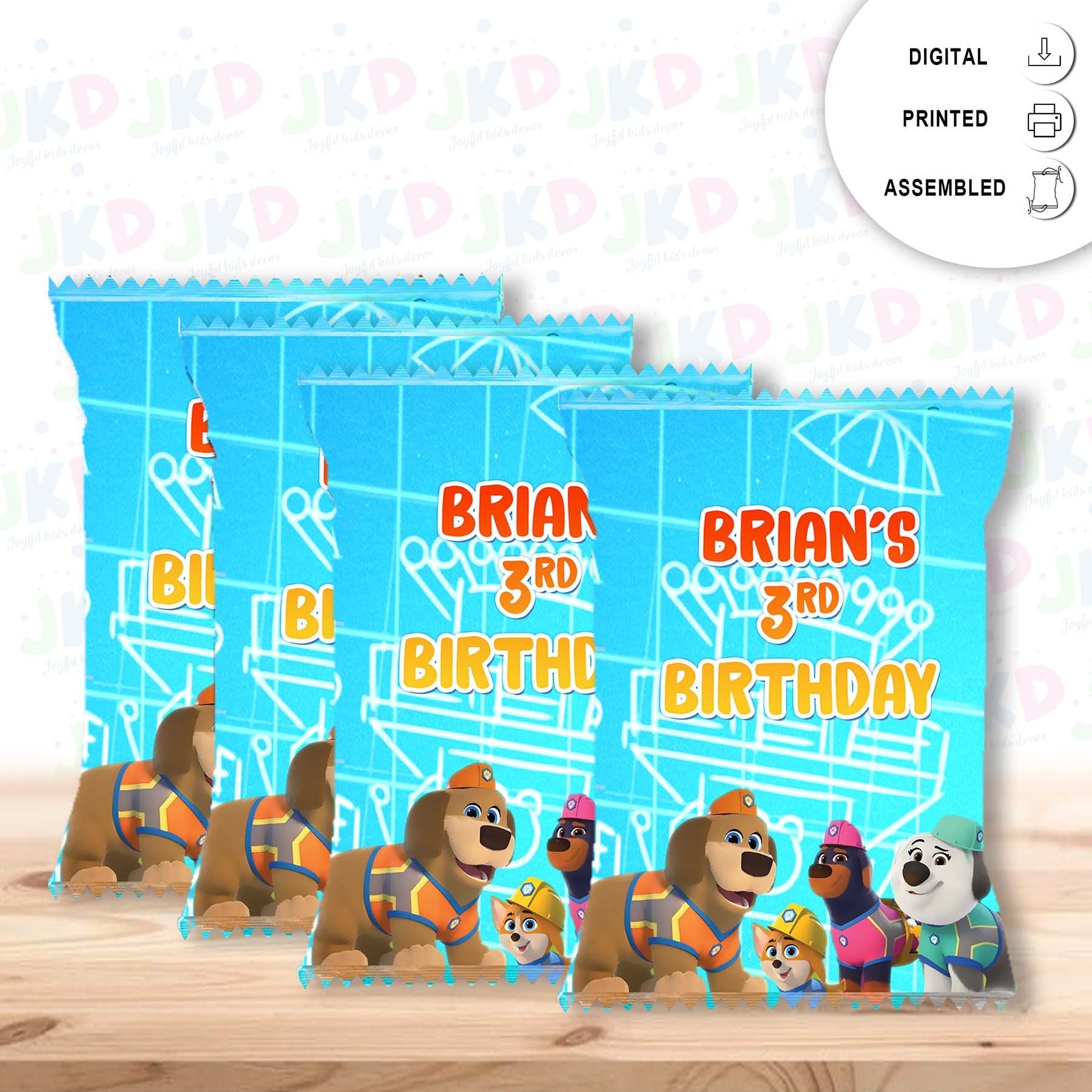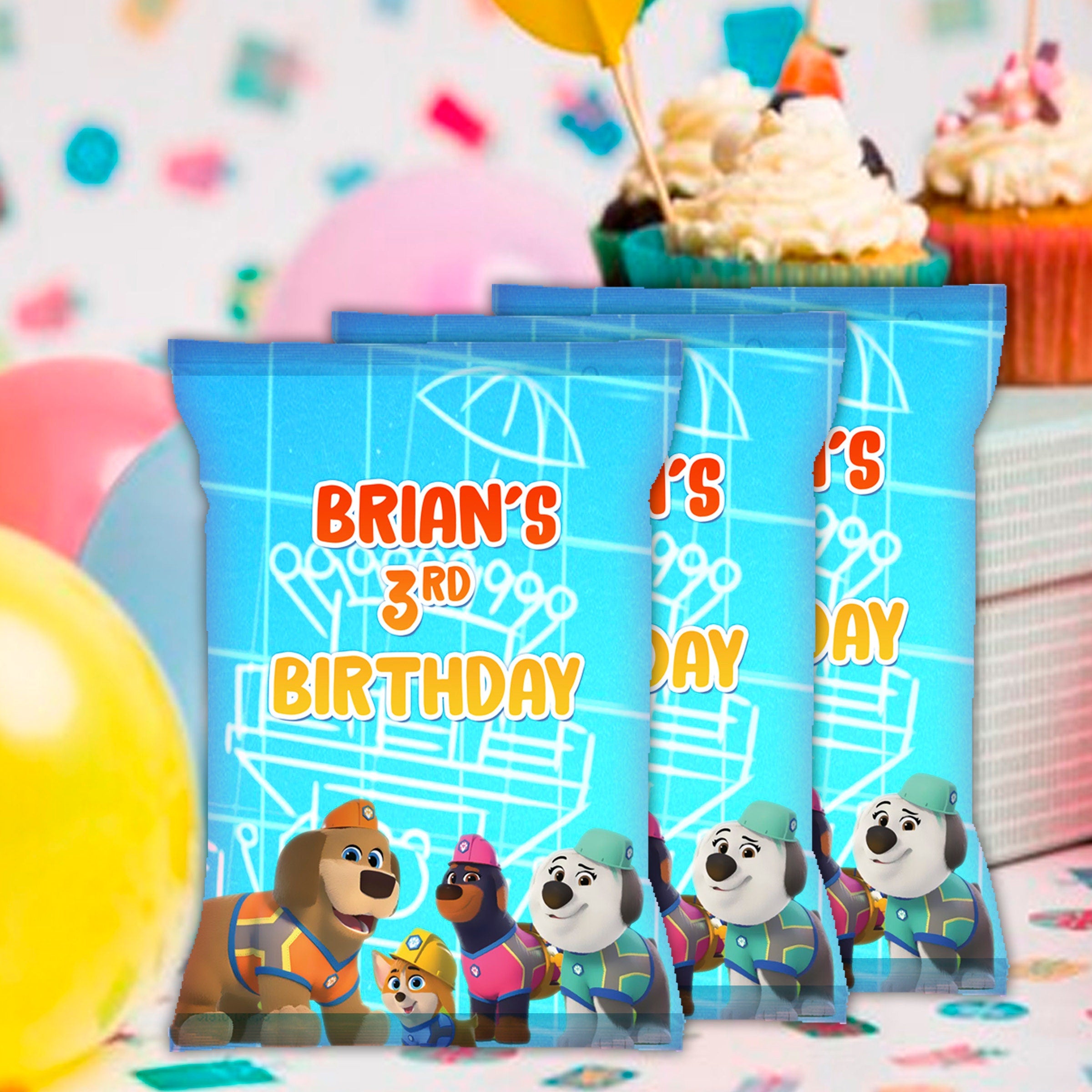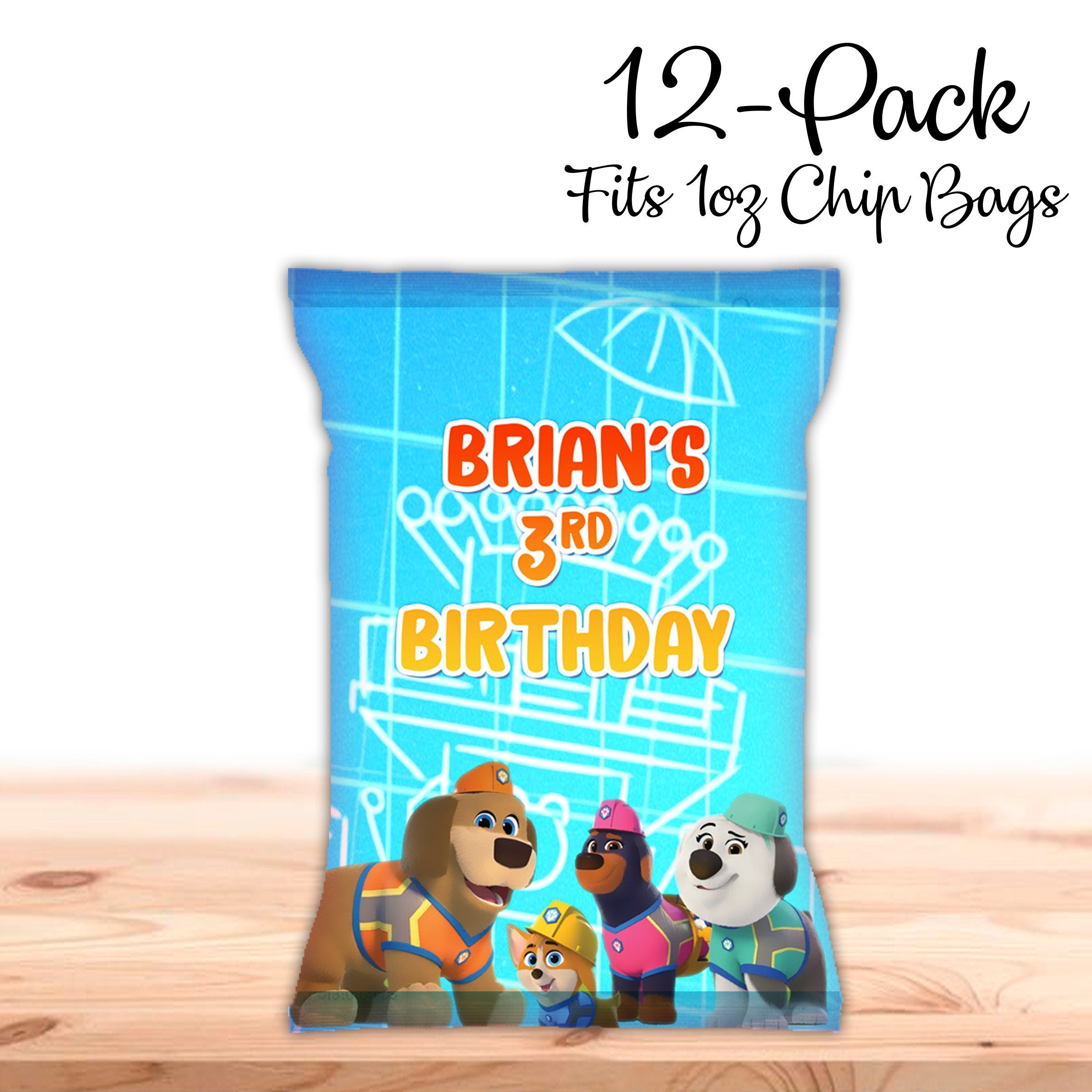Pupstruction Chip Bags Label for Kids Birthday Party Favor Decor, Stickers or Finished Options