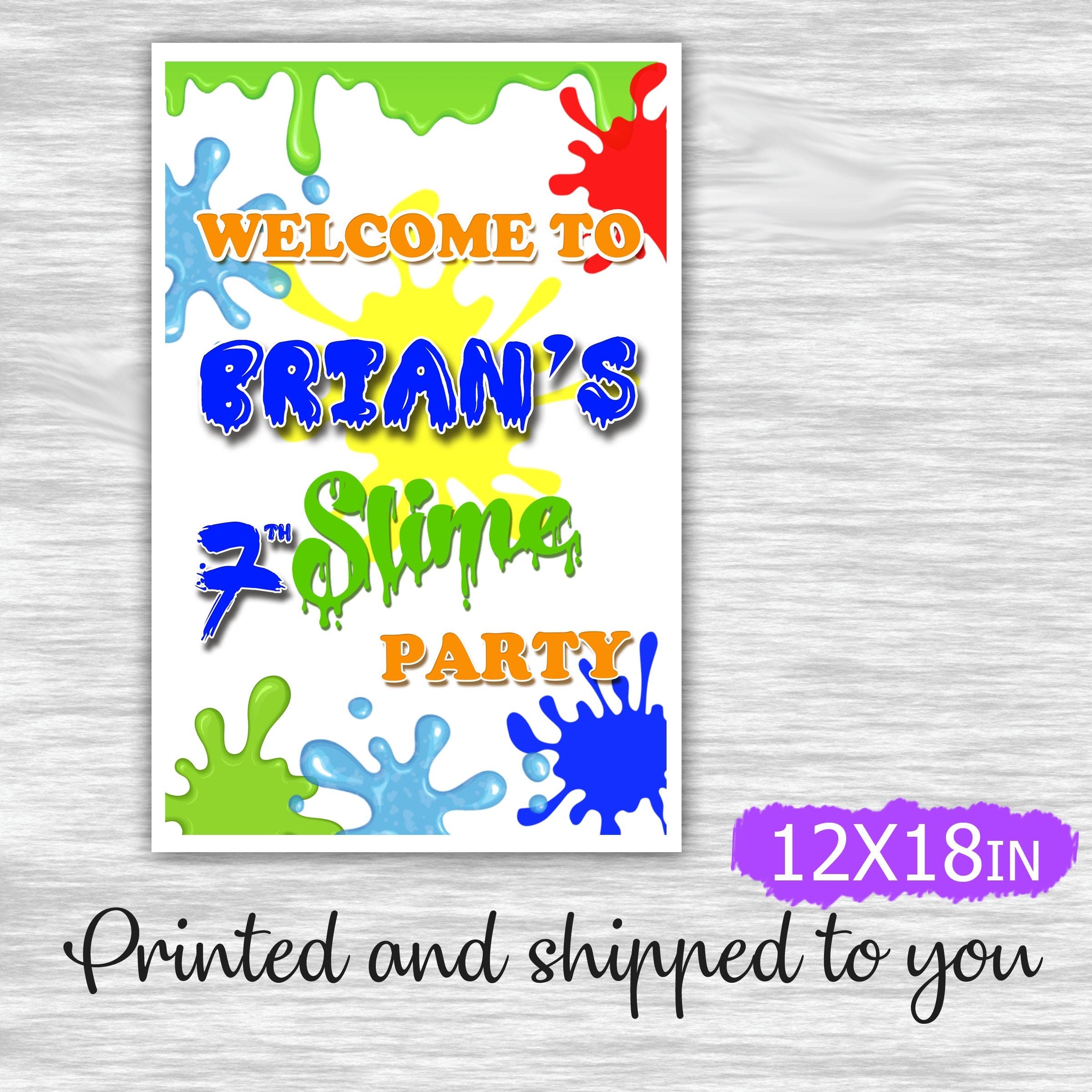 Slime Welcome Sign for Birthday Party Wall Door Decor - Hardcover 12x18in