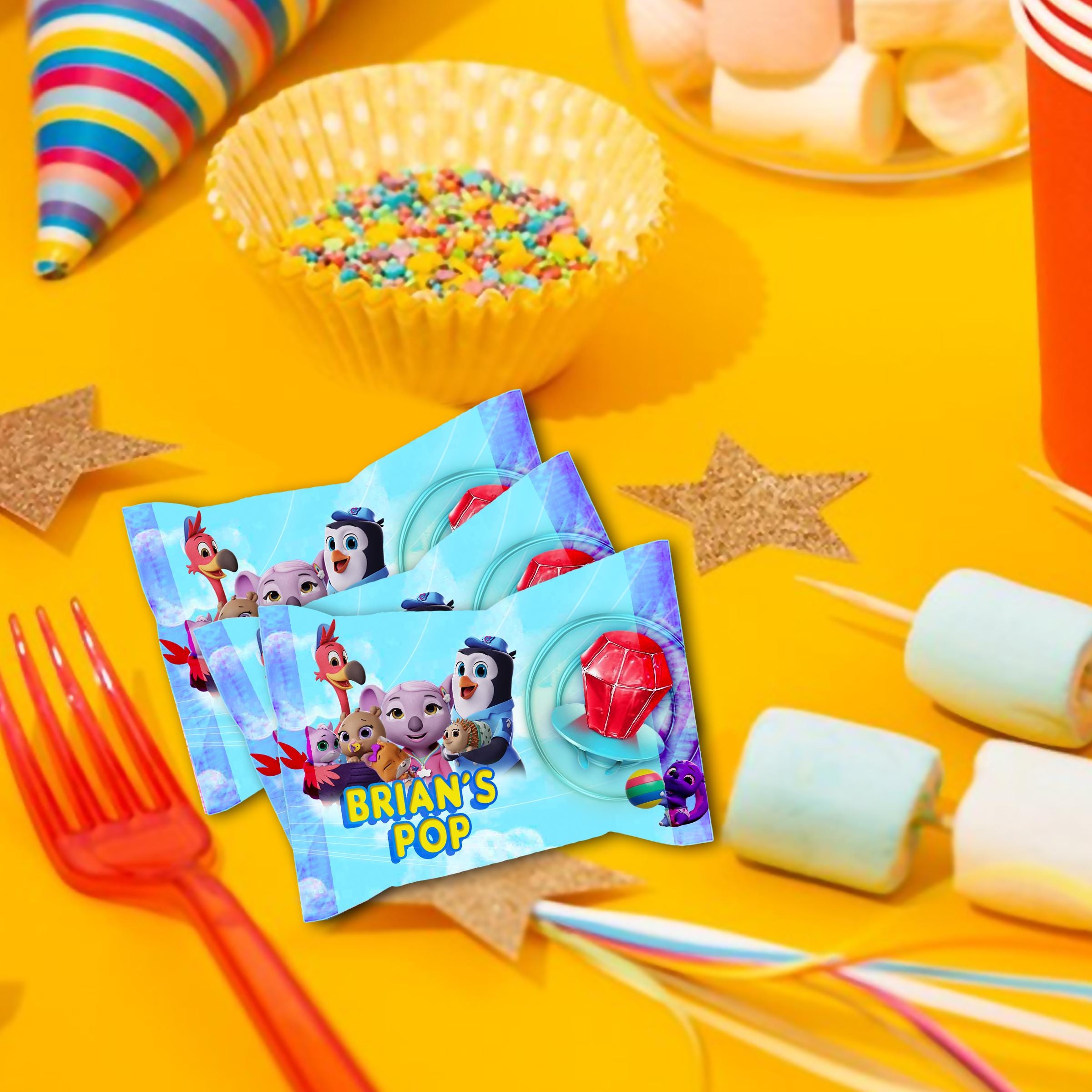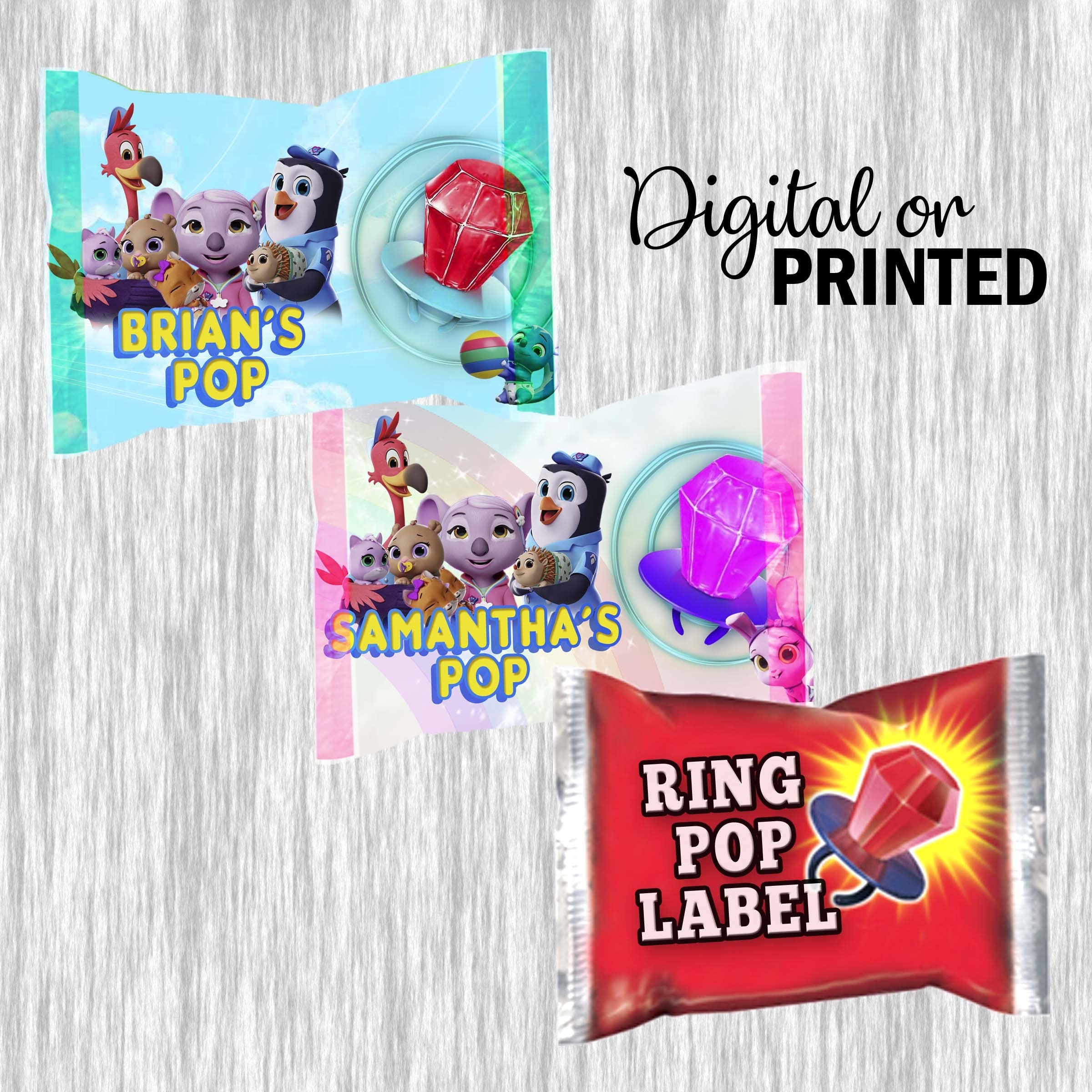 3. - 12pk ring pop with labels already installed and ready for party.