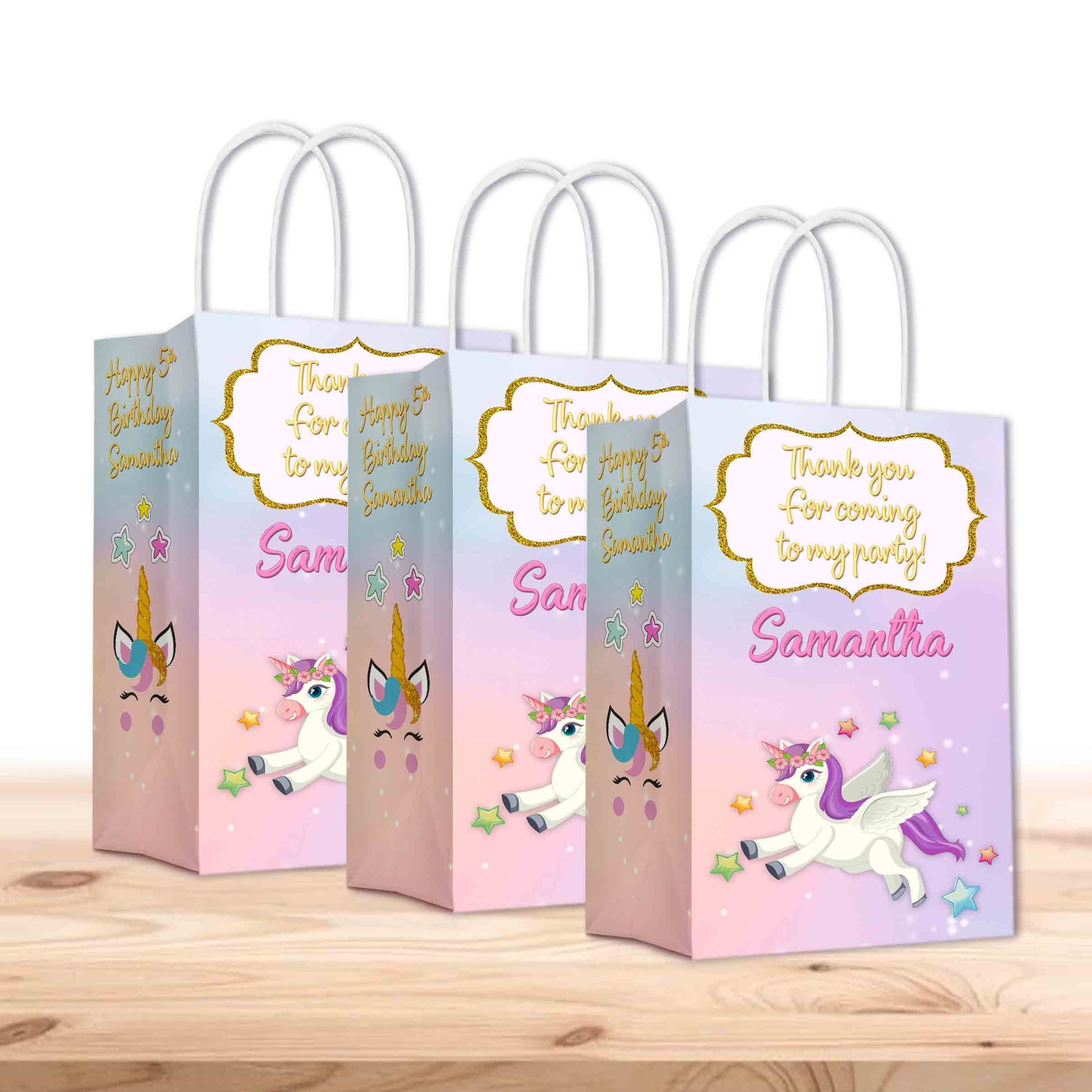 Unicorn Bags with Handles for Kids Gift Favor Birthday Party - 12pack