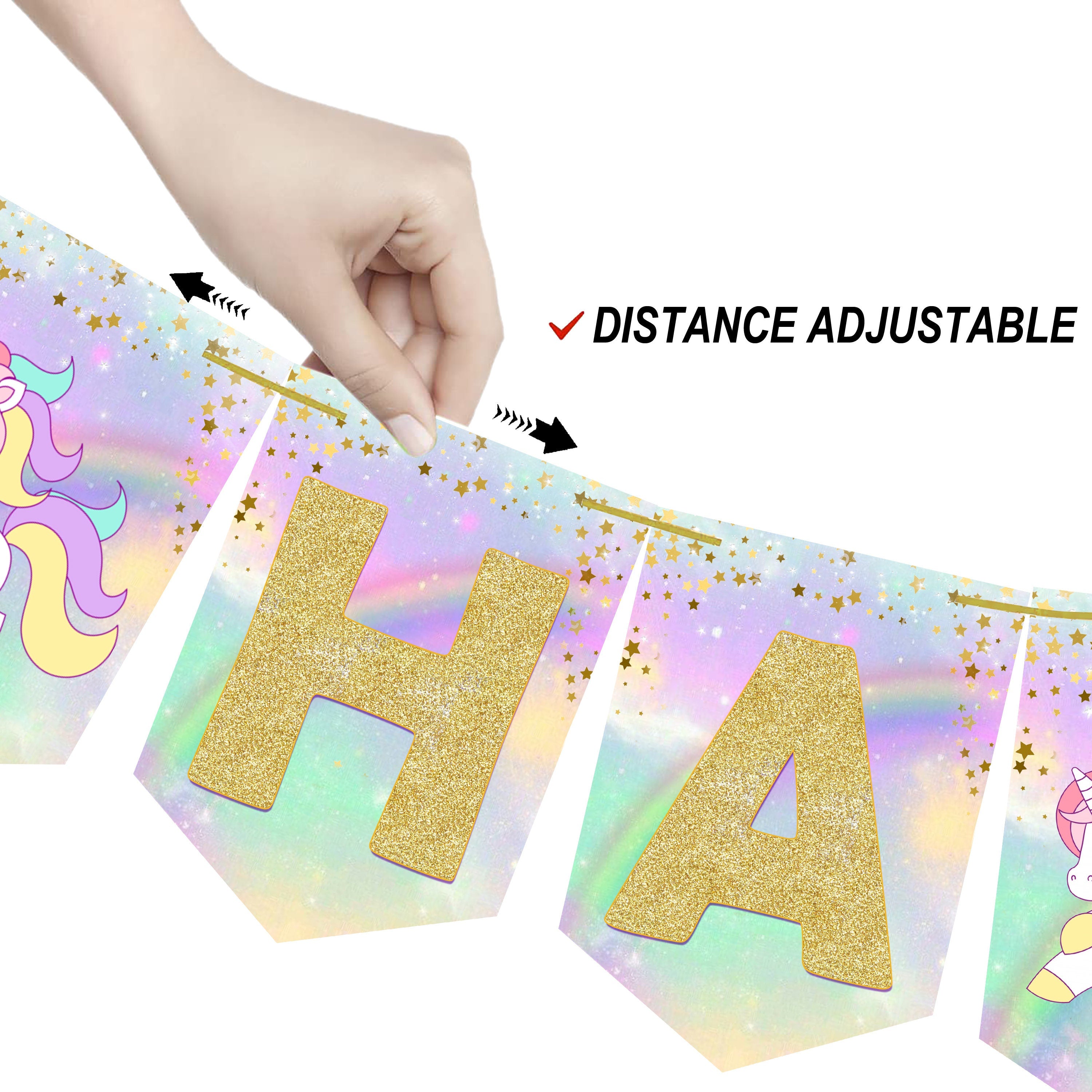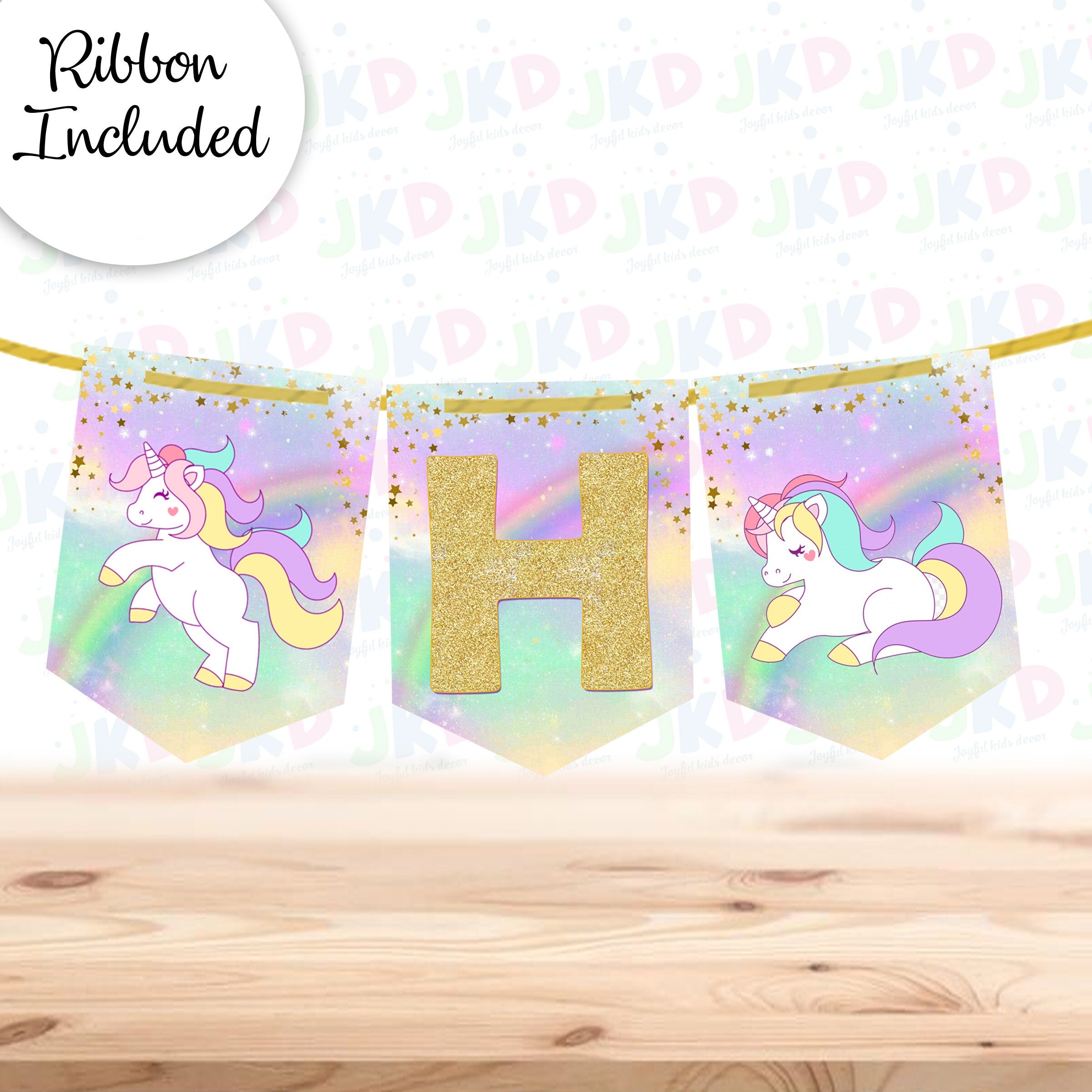 Unicorn Birthday Banner for Wall Party Decor Customized with Ribbon Included