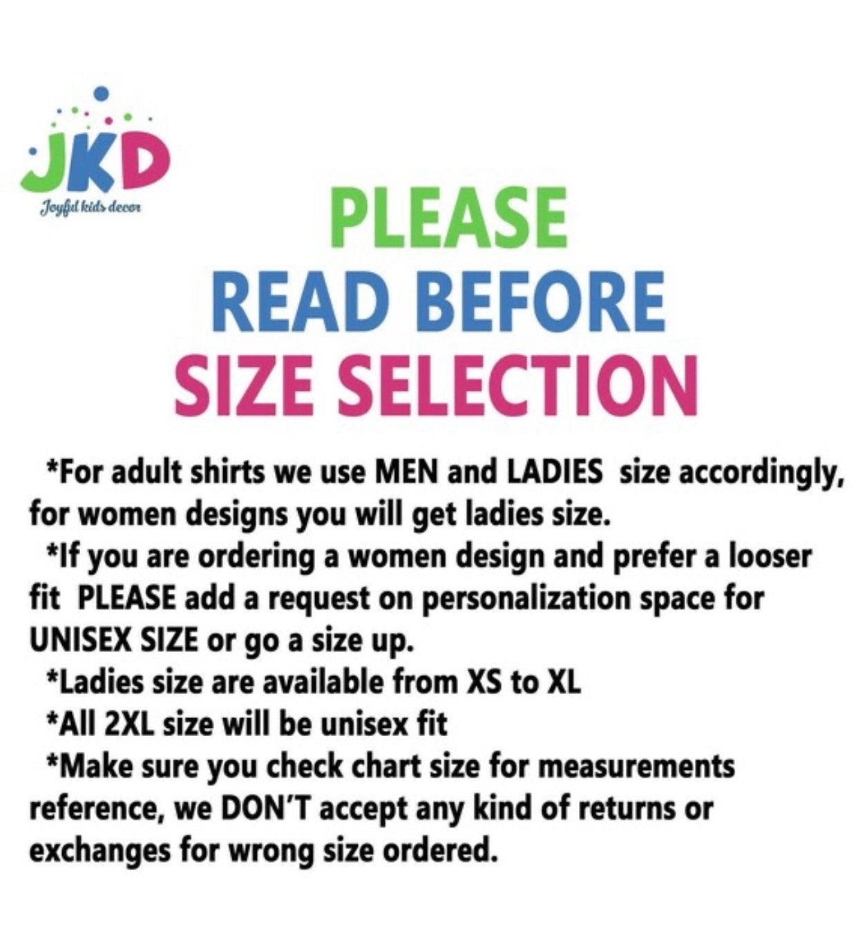 We use men and ladies size according to designs selected, please read last photo posted: ladies and girls shirts run small like a fitted style, you may request UNISEX sizs for a looser fit, must be on your order notes.
