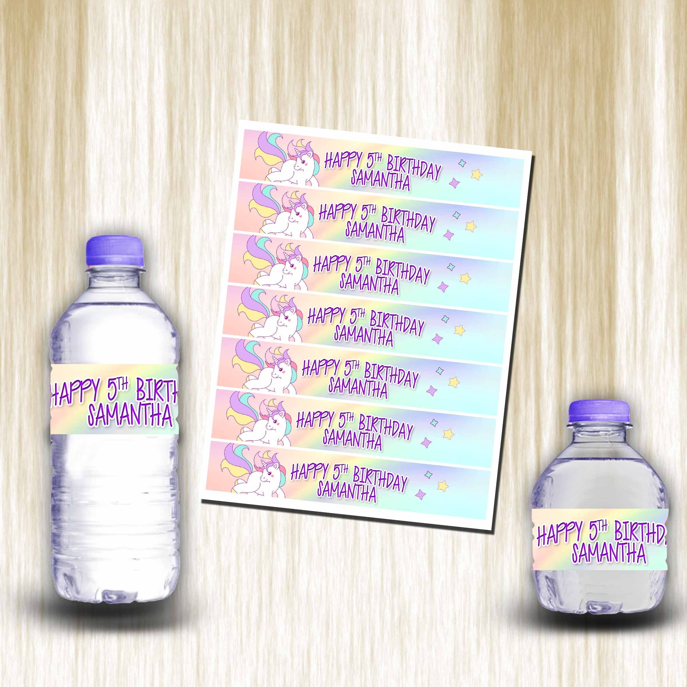 Unicorn Bottle Water Labels Waterproof Stickers for Kids Birthday Party Favor | 12-Pack Ideal for 16.9oz & 8 fl oz Bottles