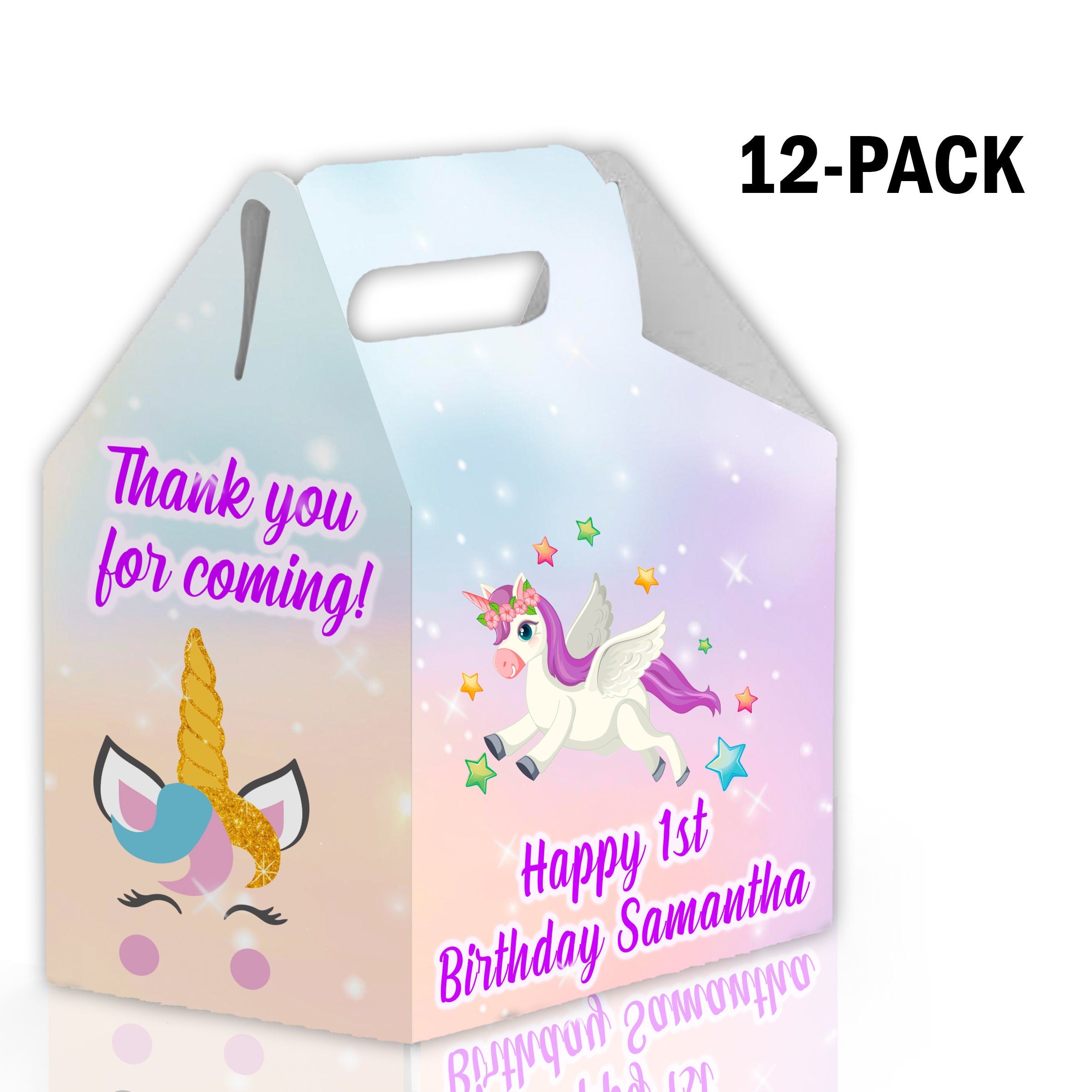 Unicorn Candy Gable Box for Birthday Party Favors 12 Pack - 4.4x4.5in