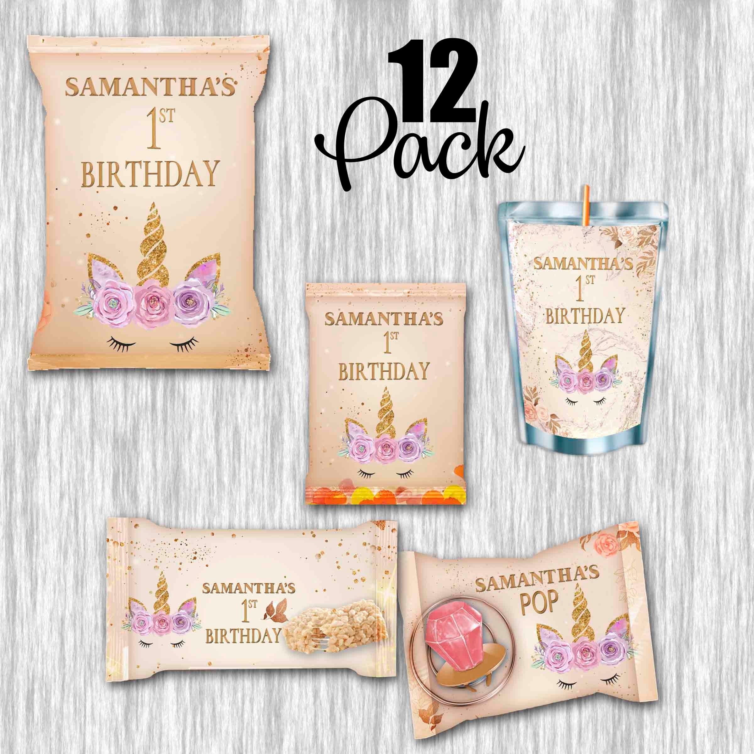 Unicorn Face Party Snacks Favor for Birthday Bundle Labels or Finished Snacks