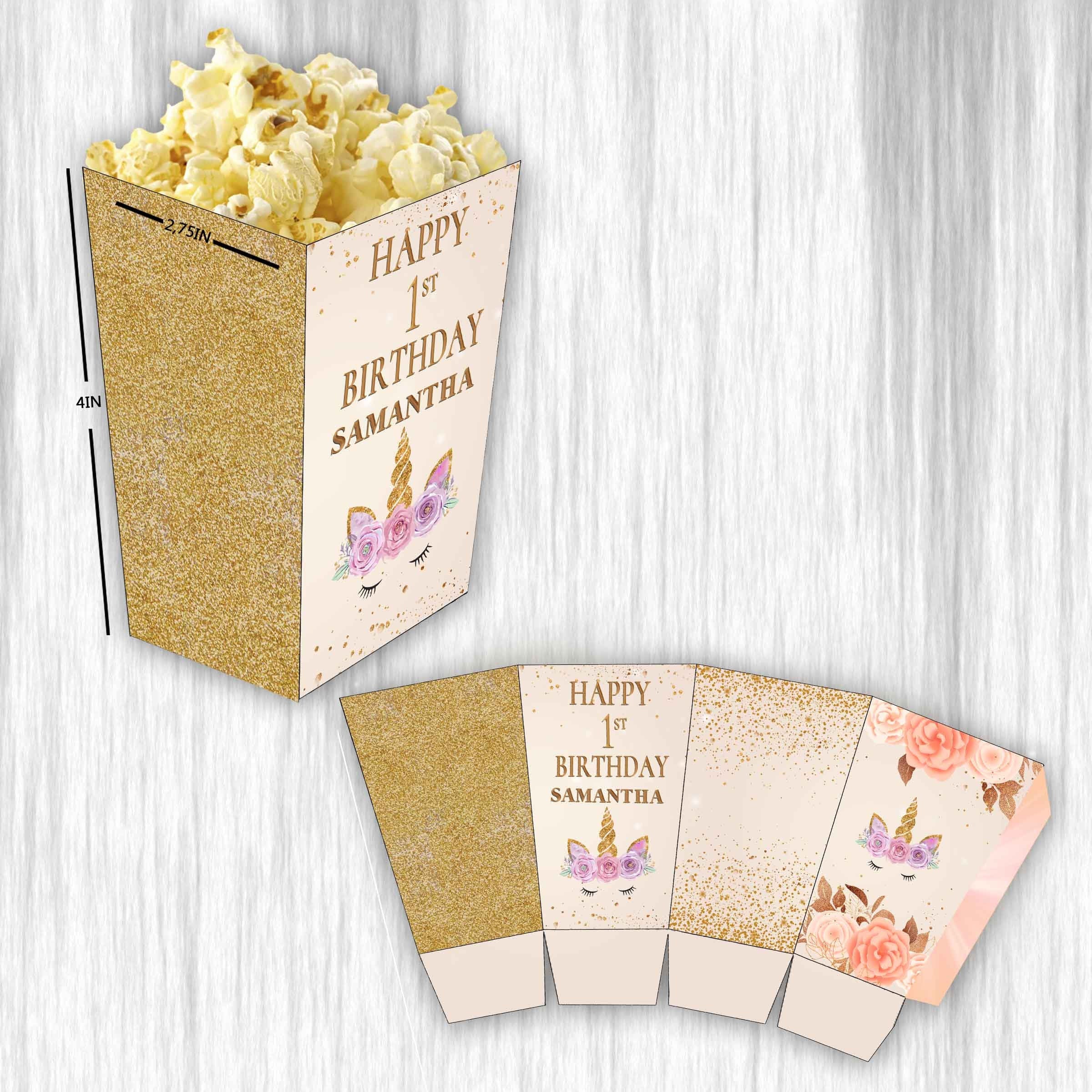 Unicorn Face Popcorn Box for Birthday Party Candy Snack Favor - Digital and physical Options