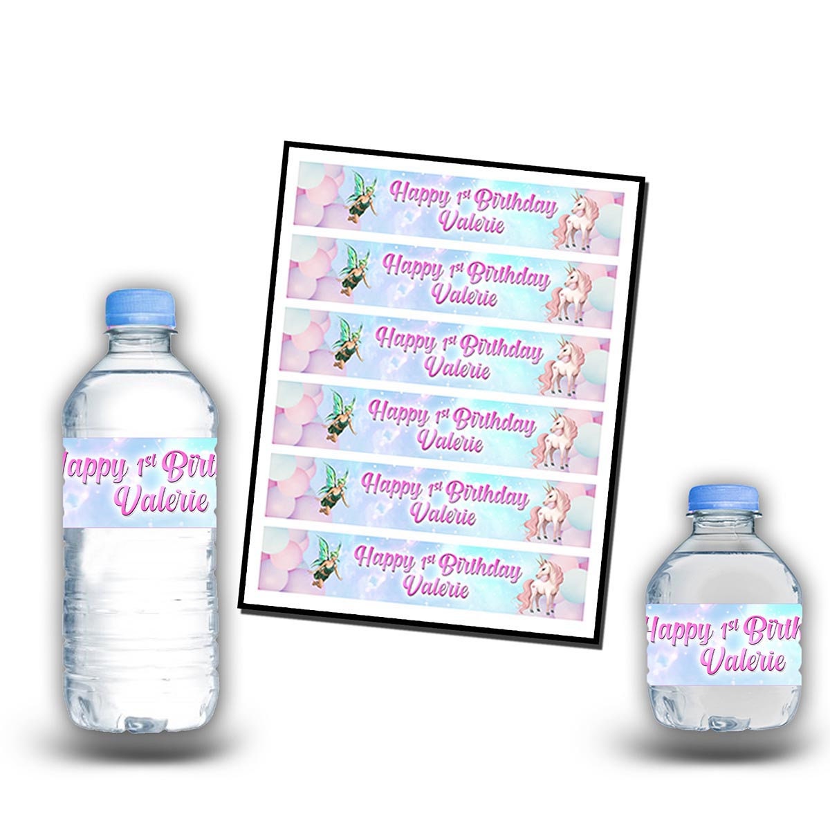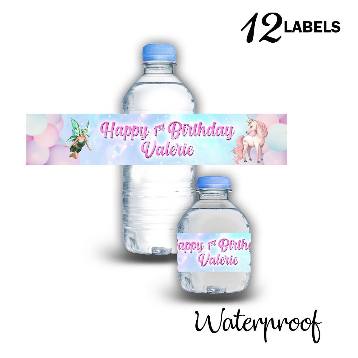 Unicorn Fairy Bottle Water Labels Waterproof Stickers for Kids Birthday Party Favor | 12-Pack Ideal for 16.9oz & 8 fl oz Bottles