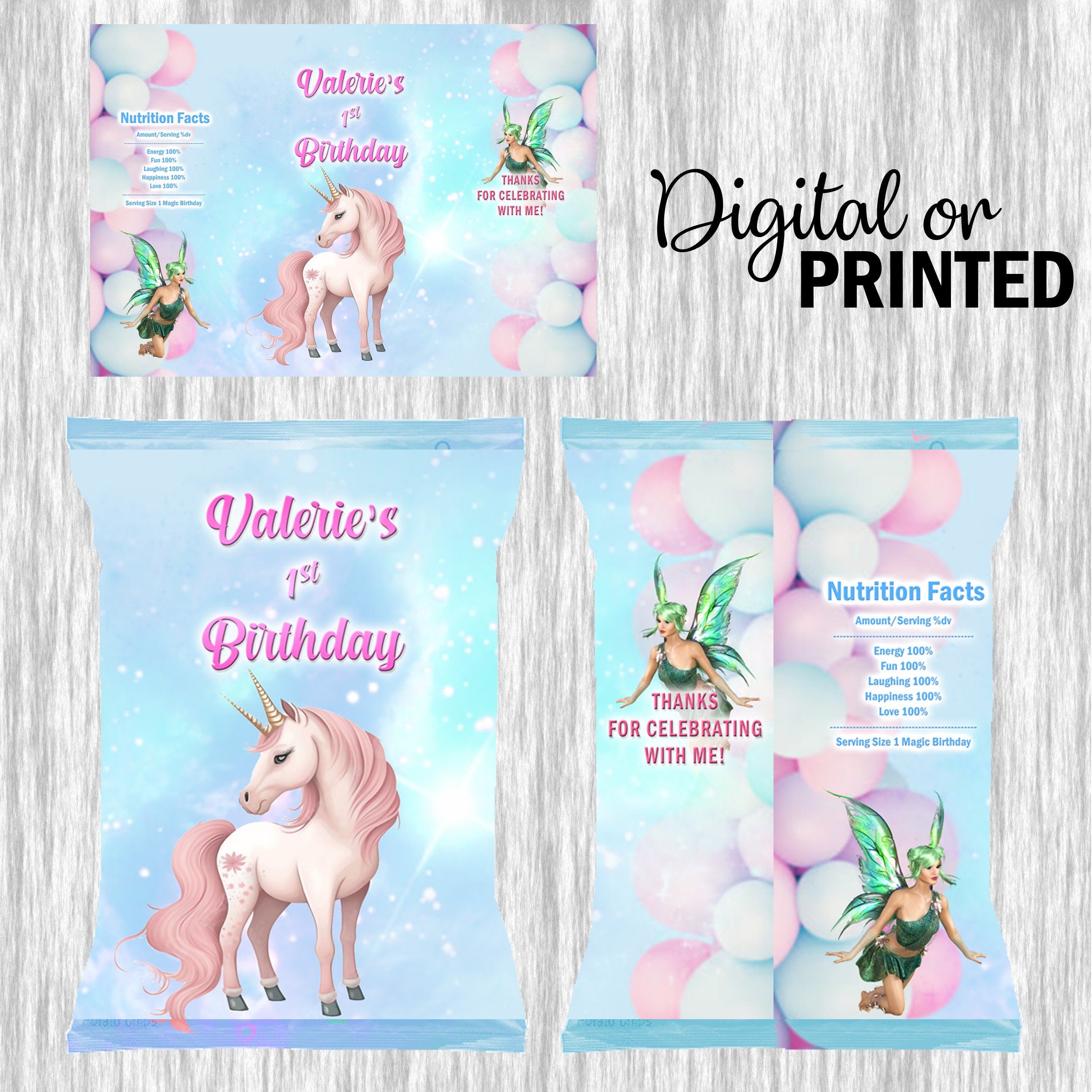 Unicorn Fairy Chip Bags Label for Kids Birthday Party Favor Decor, Stickers or Finished Options