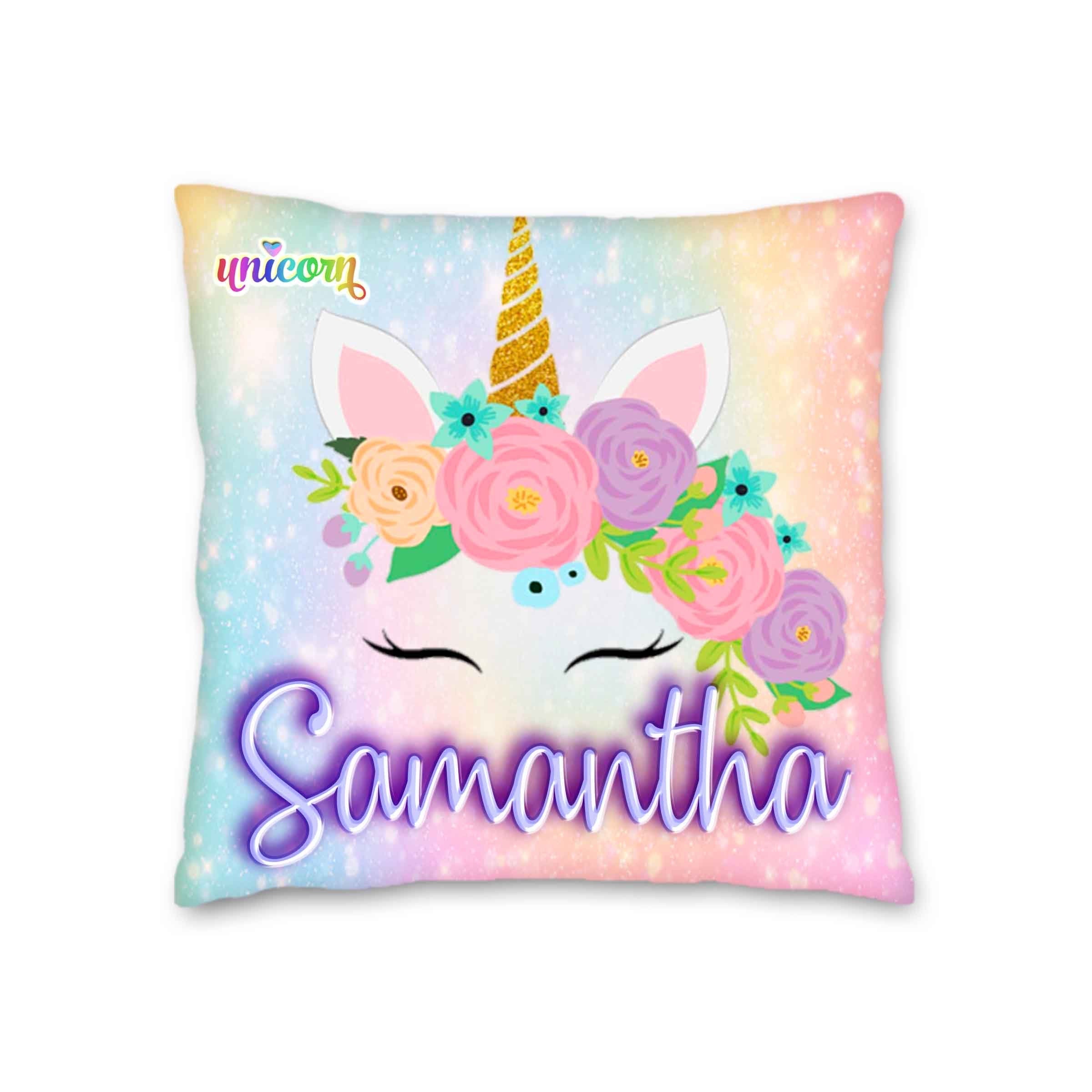Unicorn Pillow with Name Kids Cushion Room Decor Gift for Son Daughter Grandson Granddaughter- 16in insert included