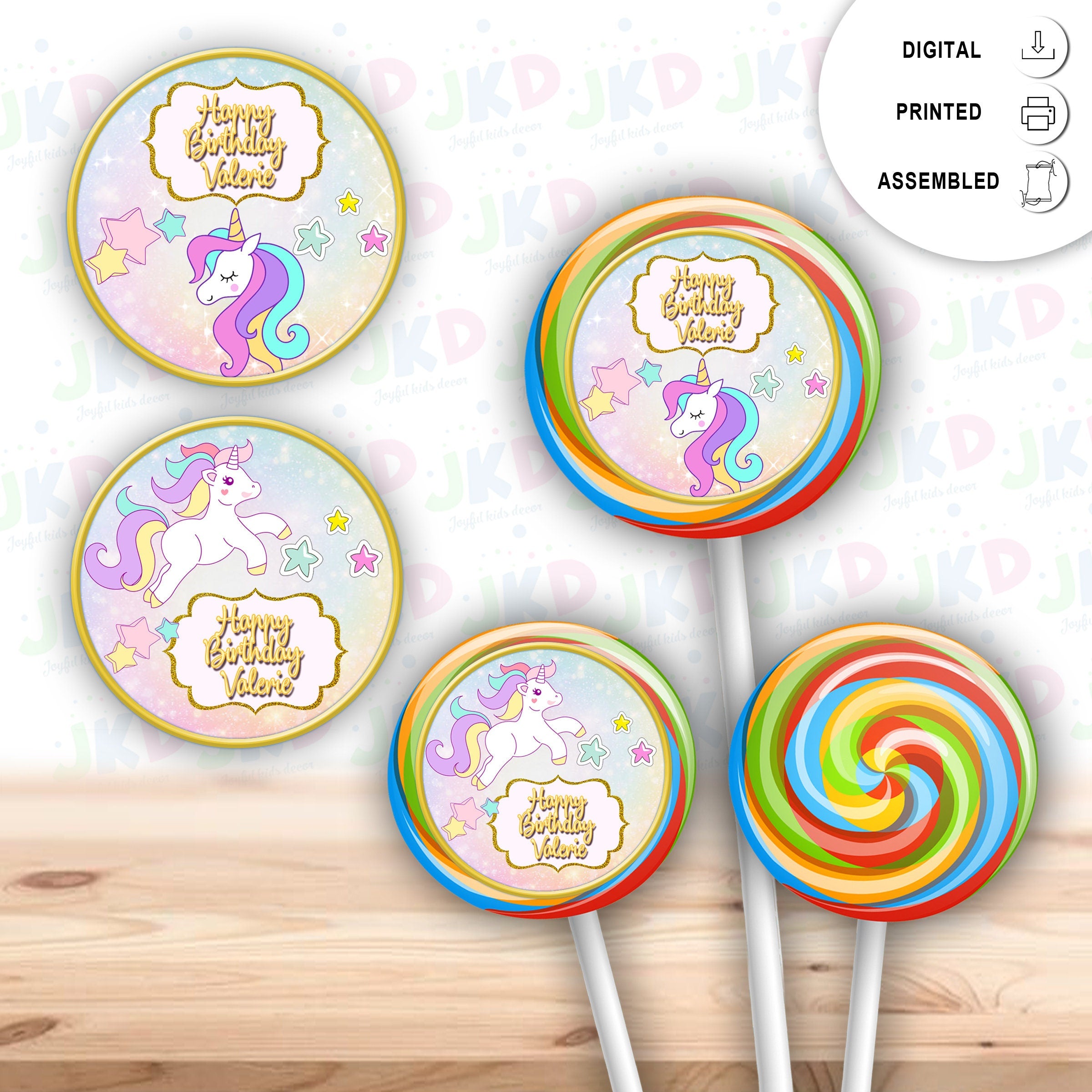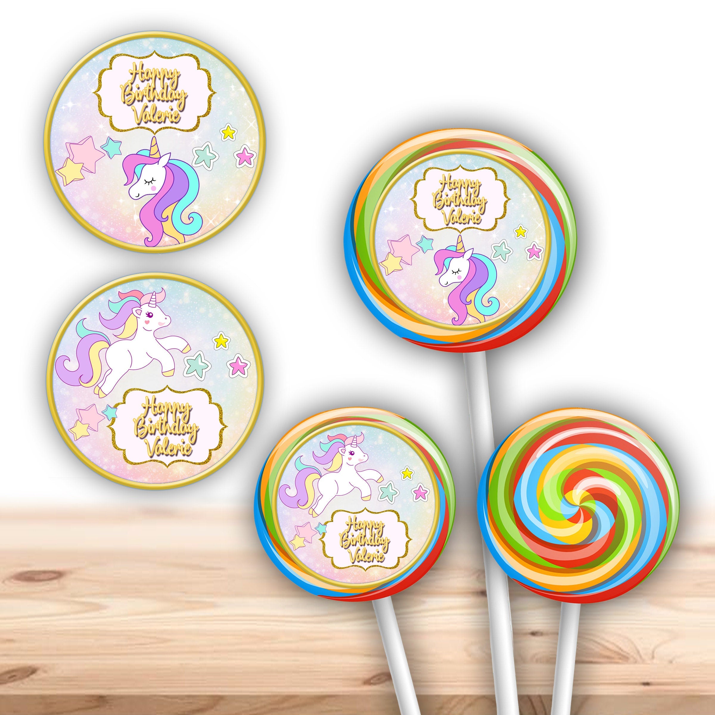 Unicorn Stickers for Birthday Party Decor Lollipops Candy Favors| 12 pack Round Labels
