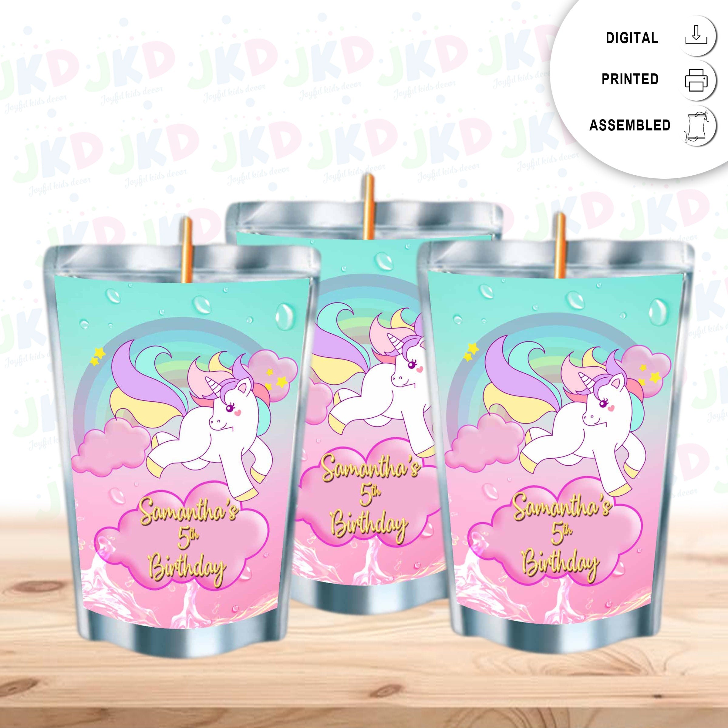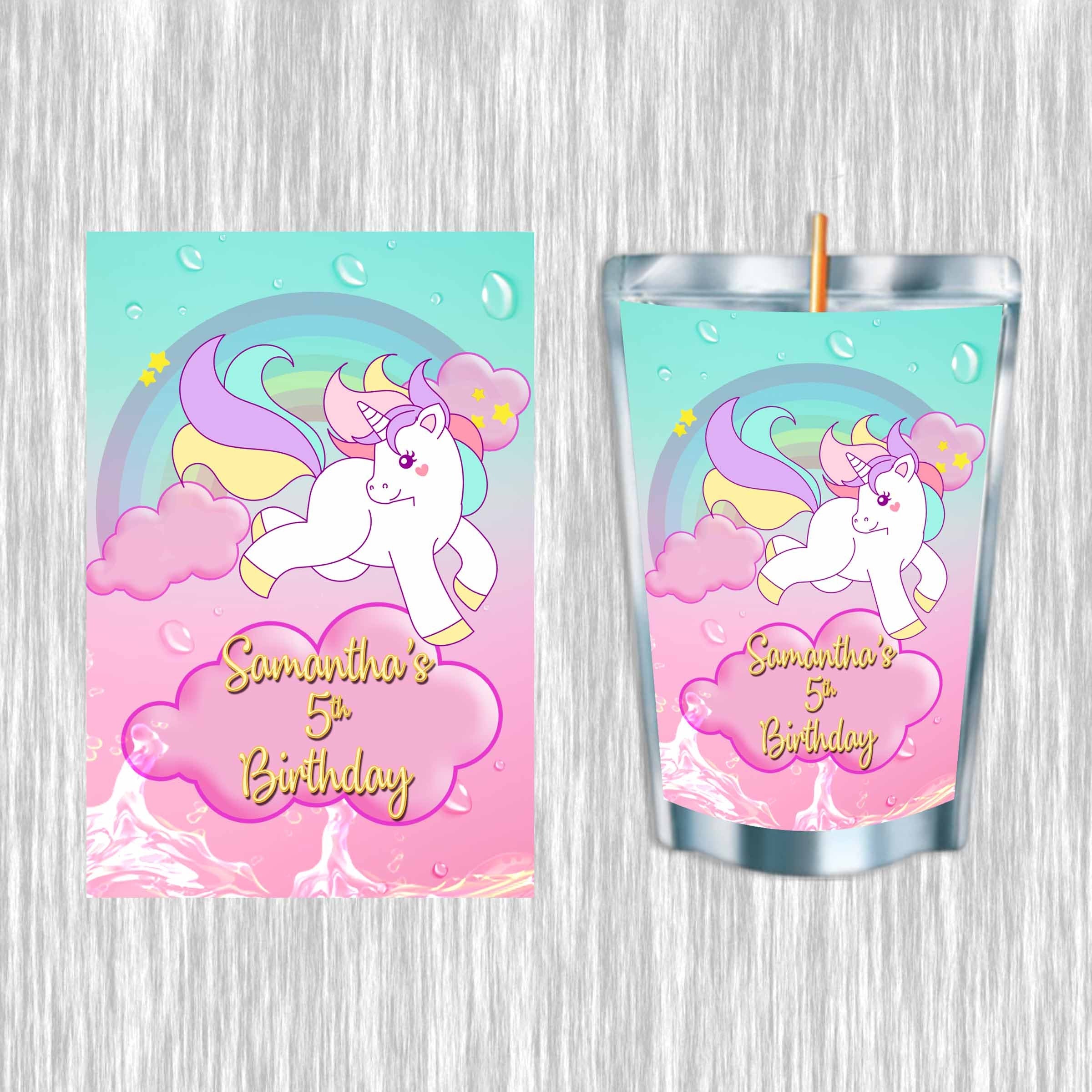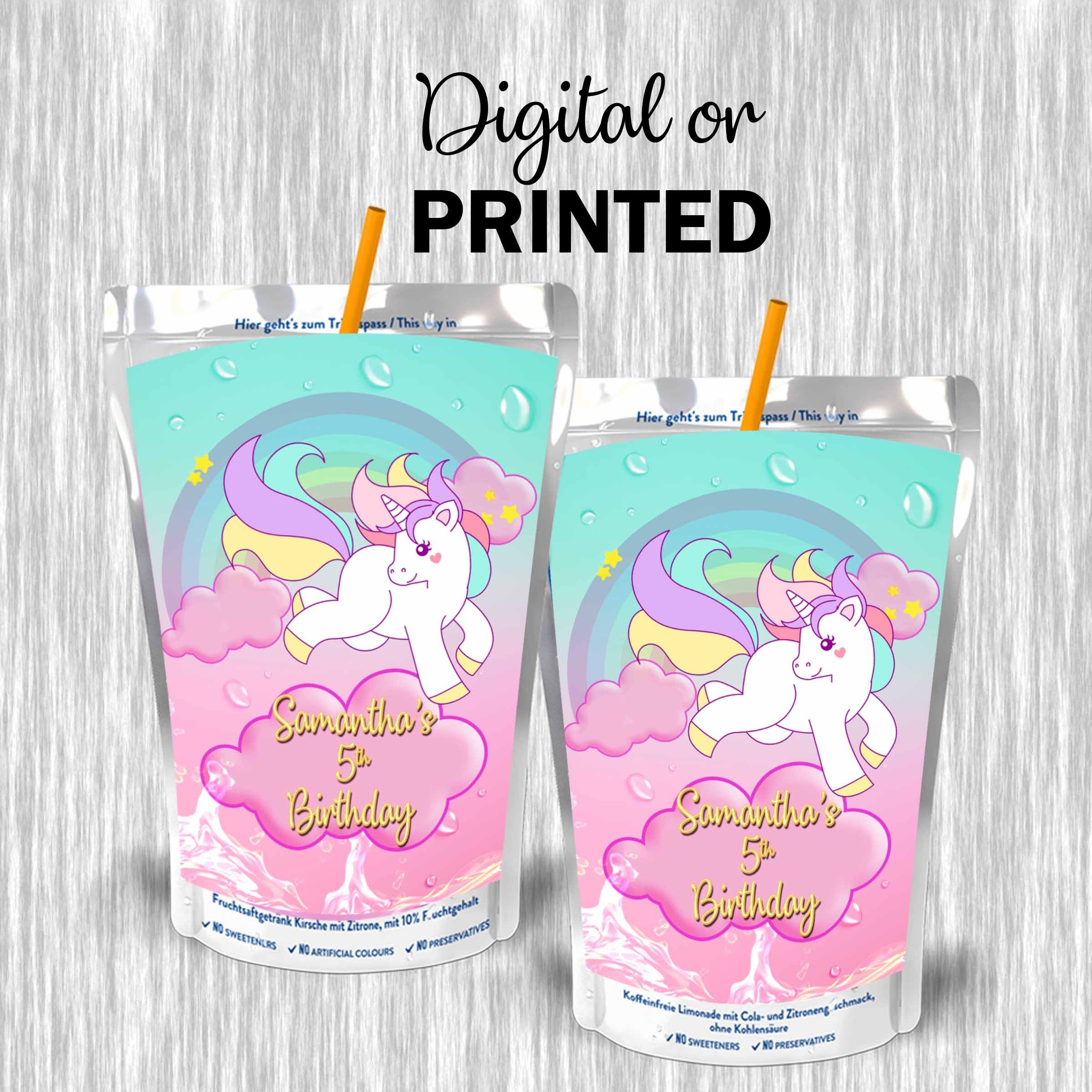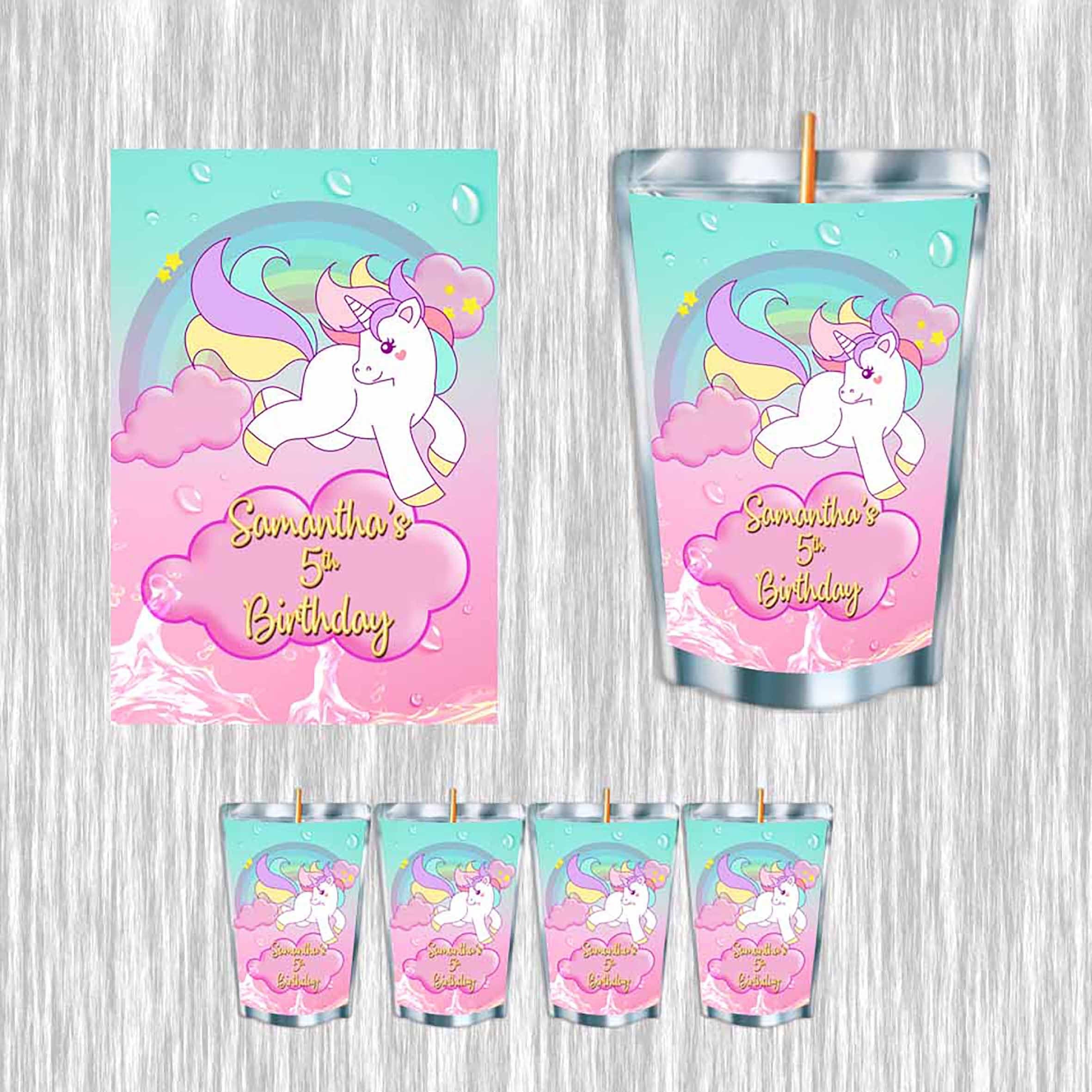 Unicorn #Style 2 Juice Pouch Label Sticker or Complete Custom Juice Pouches for Kids Birthday Party Favor Decor